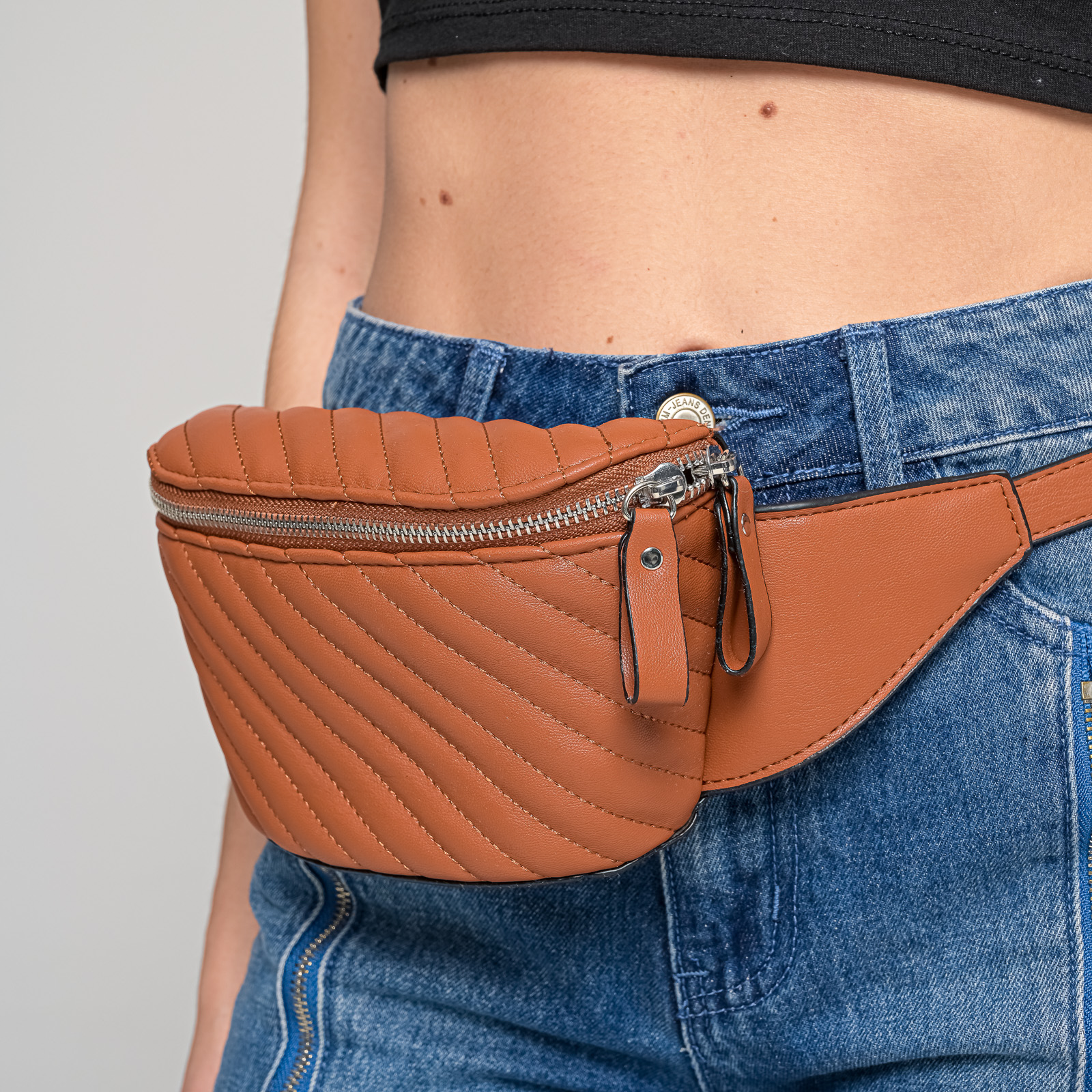 Κάμελ Τσαντάκι Μέσης Με Υφή Καπιτονέ