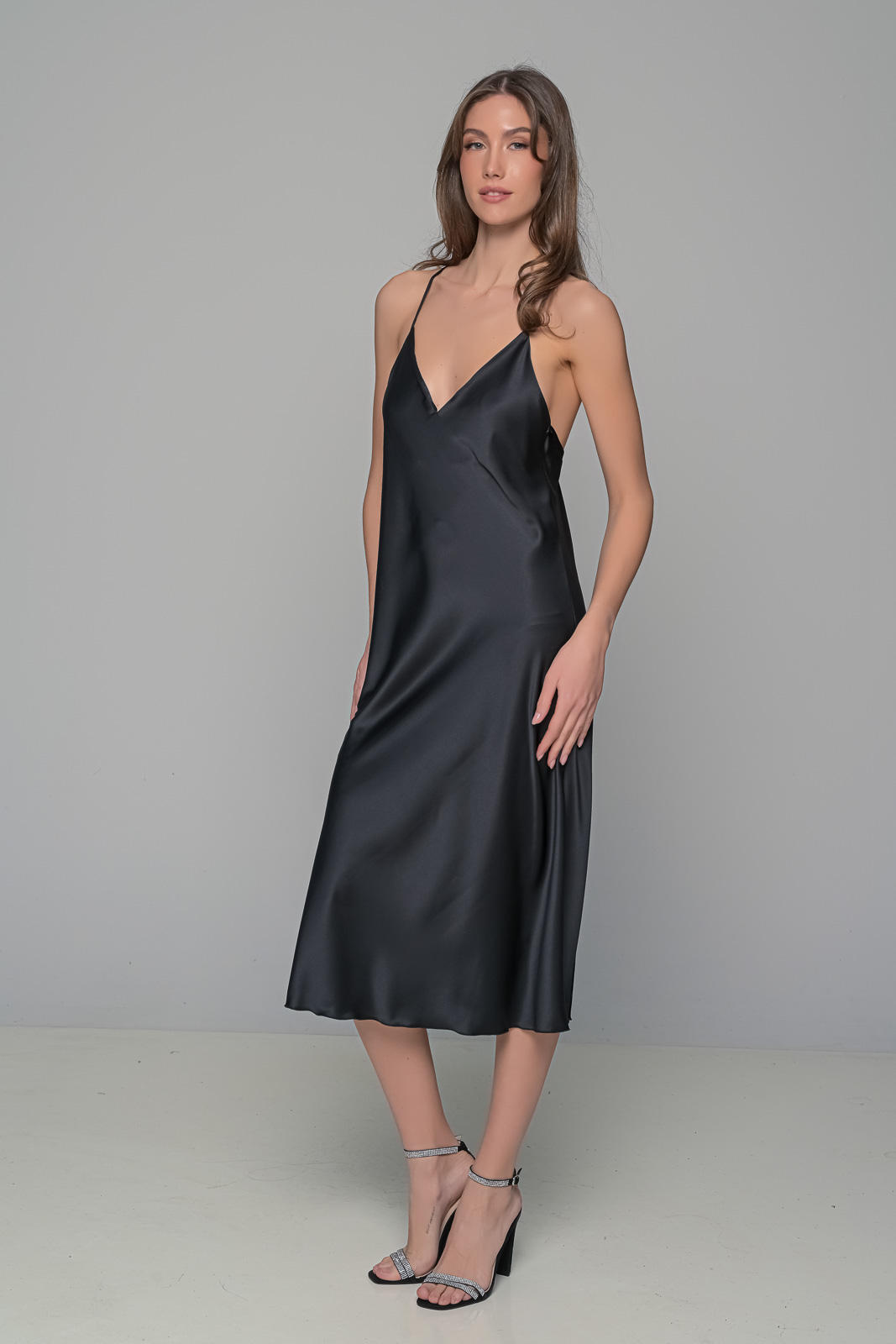 Midi Σατέν Slip Dress Δωρο Το String – Μαύρο – Milenabyparis