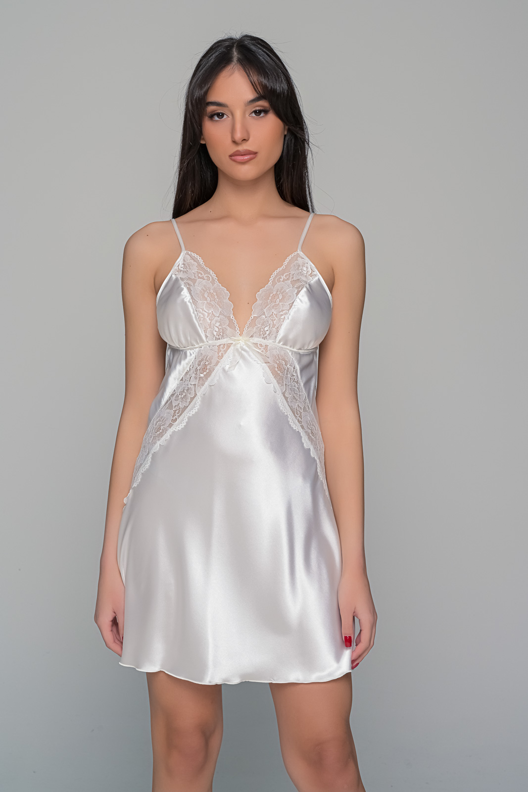 Νυφικό Σατέν Νυχτικάκι Με Δαντέλα Σετ Με String – Ιβουάρ – Milenabyparis