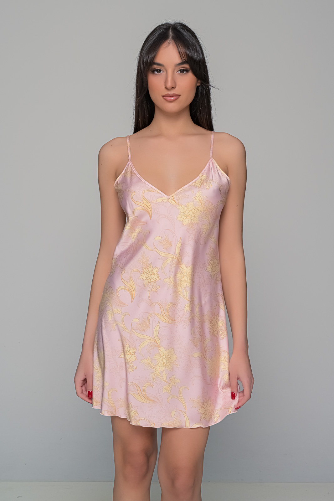 Σατέν Φλοράλ Babydoll – Ροζ – MilenaByParis