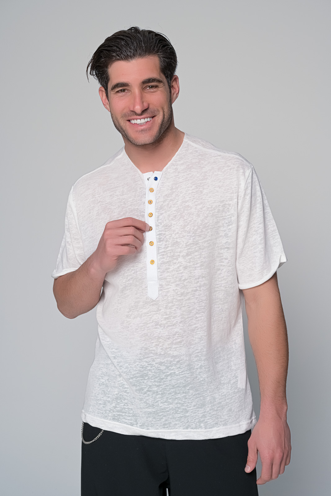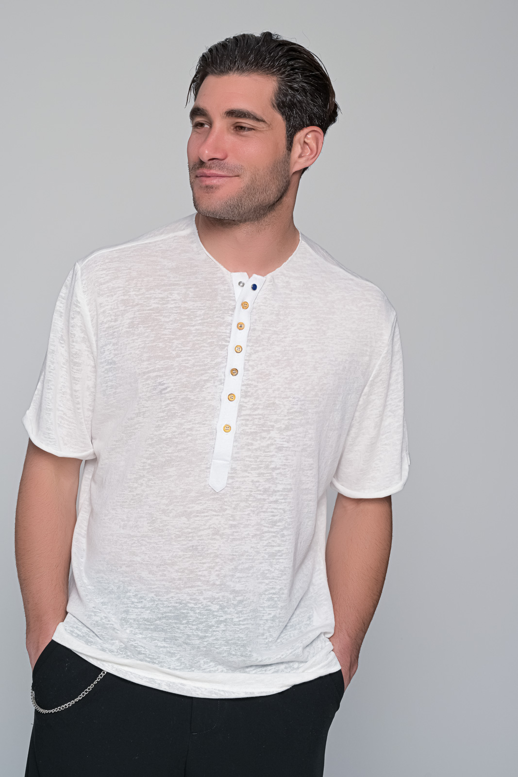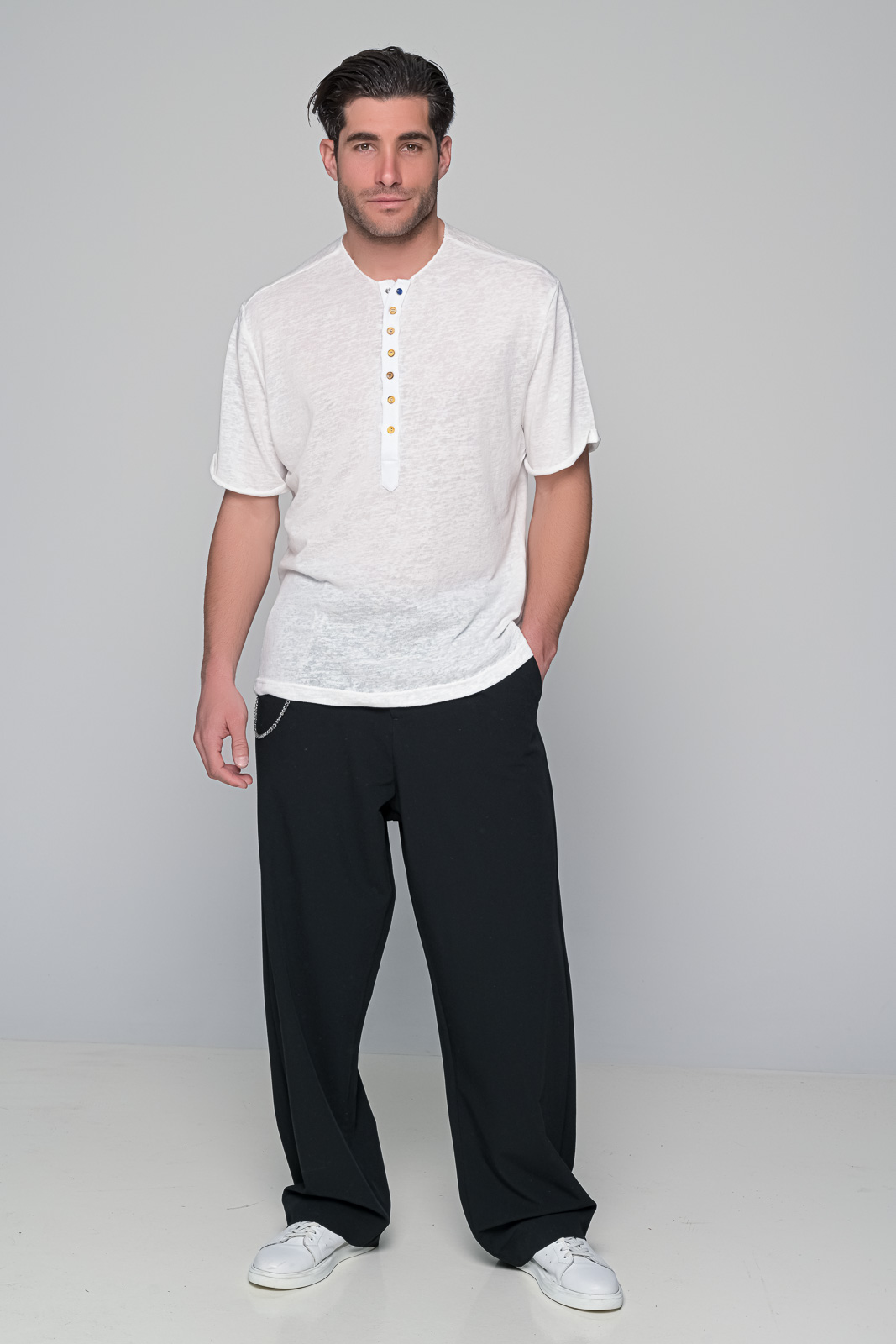 Ανδρική Μπλούζα cyclades από την ben tailor – Στυλ και ’νεση σε ΈναΗ μπλούζα cyclades της ben tailor είναι η ιδανική επιλογή για άνδρες που αναζητούν στιλ και άνεση σε κάθε τους εμφάνιση.Κατασκευασμένη από υψηλής ποιότητας ύφασμα| η μπλούζα cyclades είναι ένα αξιόπιστο κομμάτι που θα σας συνοδεύει σε κάθε περιστασιακή ή επίσημη εμφάνιση. Διατίθεται σε τρία διαφορετικά χρώματα: μαύρο| μπεζ και εκρού| προσφέροντας πολλαπλές επιλογές για να ταιριάξετε το στυλ σας. Η μπλούζα διαθέτει επτά ξύλινα κουμπιά καθέτως κατά μήκος της μπροστινής πλευράς| προσδίδοντας έναν διακριτικά κομψό χαρακτήρα.Επιπλέον| ένα μεταλλικό χρωματιστό κουμπί τοποθετείται στην περιοχή του γιακά| προσδίδοντας ένα μοντέρνο και διακριτικό στοιχείο.Η μπλούζα cyclades συνδυάζει αρμονικά την κομψότητα με την άνεση| προσφέροντας ένα ευέλικτο κομμάτι για κάθε περίσταση. Σύνθεση: 55%cotton 45%pol