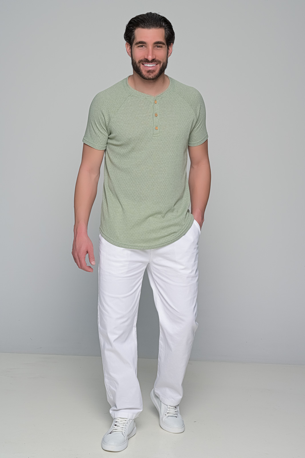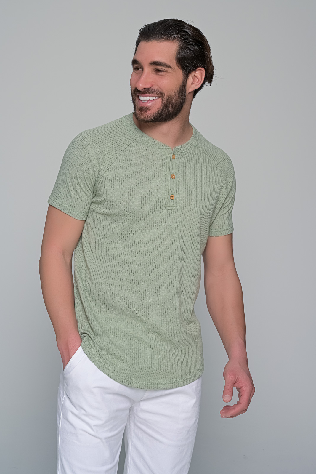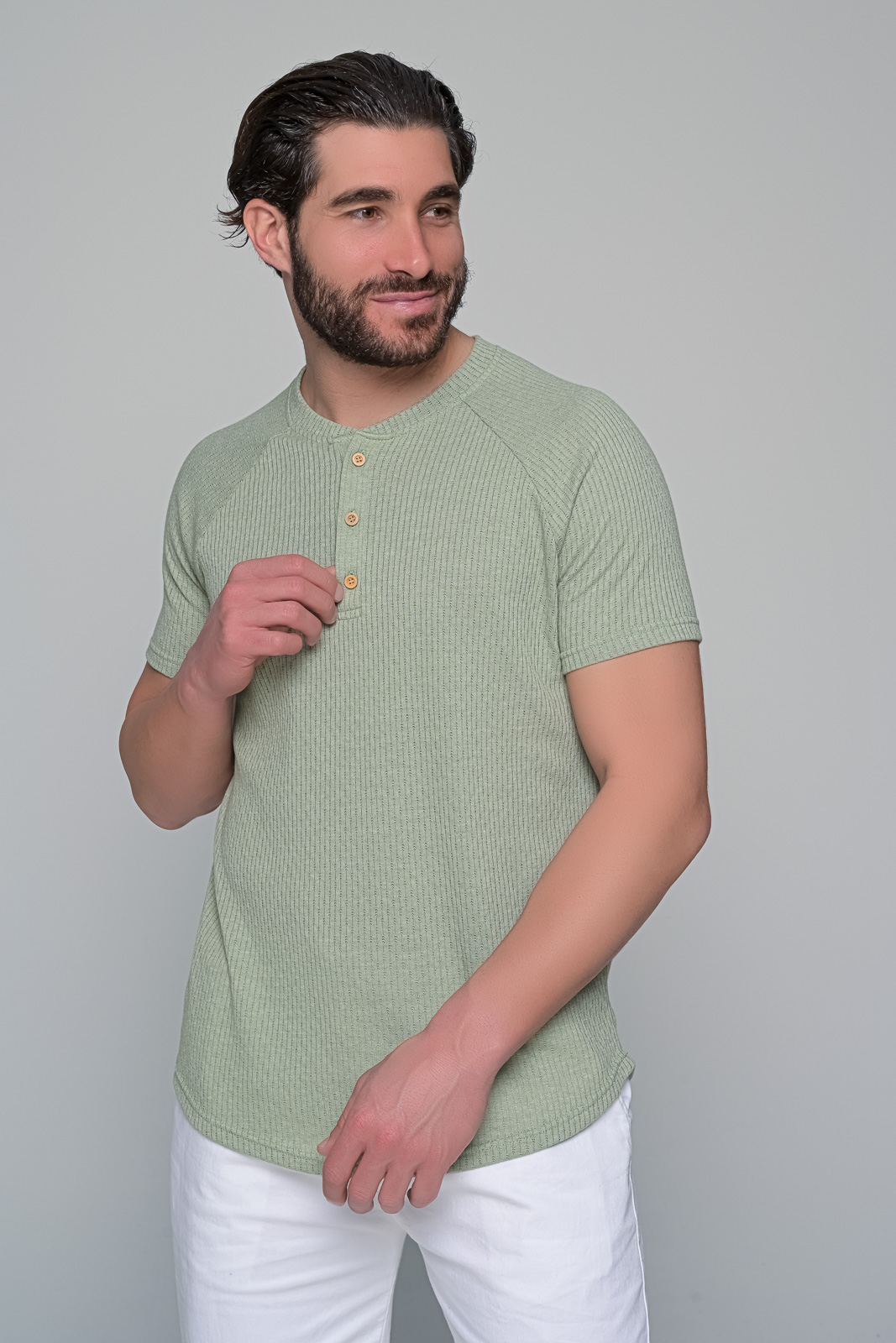 t-shirt buttoned ben tailor ΠΕΡΙΓΡΑΦΗ Το καθημερινό γίνεται ξεχωριστό. Το t-shirt buttoned της ben tailor συνδυάζει ρετρό αναφορές με μοντέρνο σχεδιασμό| χάρη στο ribbed ύφασμα και την πατιλέτα με ξύλινα κουμπιά. Η εφαρμογή αγκαλιάζει το σώμα με διακριτικό τρόπο| προσφέροντας στυλ και άνεση σε κάθε σου εμφάνιση. Ιδανικό για off-duty εμφανίσεις| με chino ή λινό παντελόνι| δίνει χαρακτήρα χωρίς να προσπαθεί. ΧΑΡΑΚΤΗΡΙΣΤΙΚΑ Κανονική εφαρμογή ribbed ύφανση Λαιμόκοψη με πατιλέτα και κουμπιά Καμπυλωτό τελείωμα stand straight| walk proud – με έμφαση στη λεπτομέρεια. Σύνθεση: 100%cotton