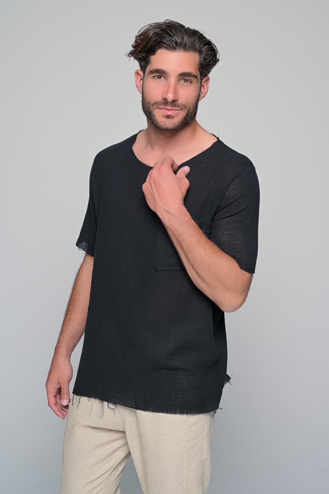 ben tailor – Μπλούζα terazza Περιγραφή:Η μπλούζα terazza είναι σχεδιασμένη για να προσφέρει άνεση και κομψότητα. Το ύφασμα της είναι ελαφρύ και αναπνεύσιμο| ιδανικό για ζεστές ημέρες| ενώ η μοντέρνα γραμμή της την καθιστά ιδανική για καθημερινή χρήση και πιο επίσημες εμφανίσεις. Χαρακτηριστικά:Υλικό: Ελαφρύ και αναπνεύσιμο ύφασμα που εξασφαλίζει άνεση καθ’ όλη τη διάρκεια της ημέρας.Εφαρμογή: ’νετη γραμμή που προσφέρει ελευθερία κινήσεων.Σχέδιο: Διαθέτει στρογγυλή λαιμόκοψη και μία τσέπη στο στήθος για επιπλέον στυλ.’κρες: Ανεπεξέργαστες άκρες για μια πιο μοντέρνα και ανεπίσημη εμφάνιση.Διαθέσιμα Χρώματα: Μπεζ και μαύρο| ιδανικά για να ταιριάξουν με οποιοδήποτε σύνολο.Η μπλούζα terazza της ben tailor είναι το ιδανικό κομμάτι για όσους αναζητούν έναν συνδυασμό άνεσης και στυλ στην καθημερινότητά τους. Σύνθεση: 100%cotton