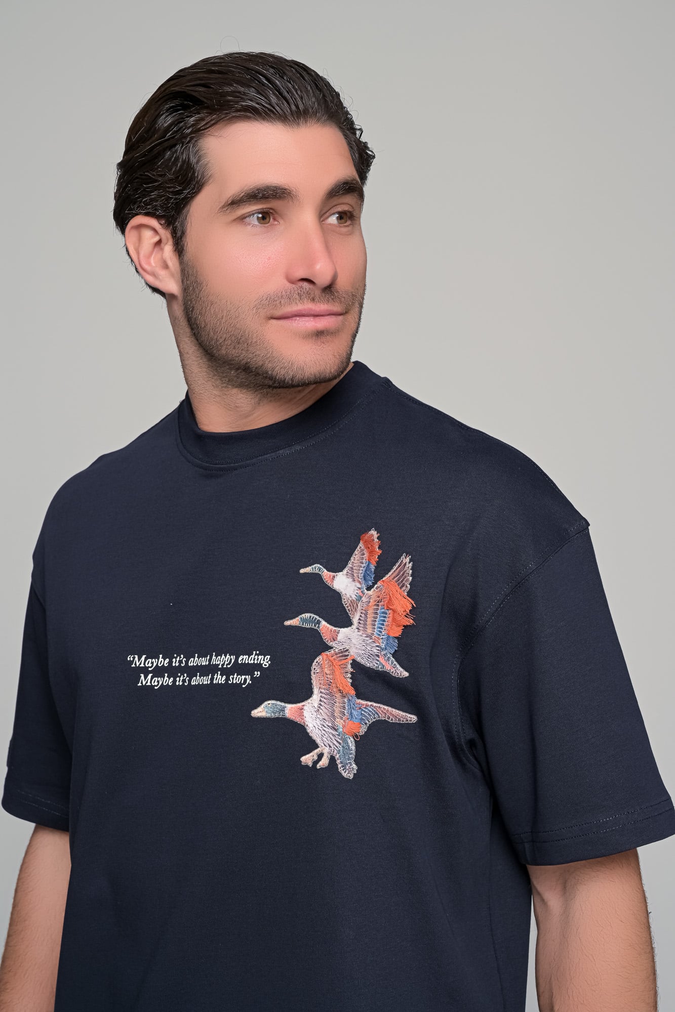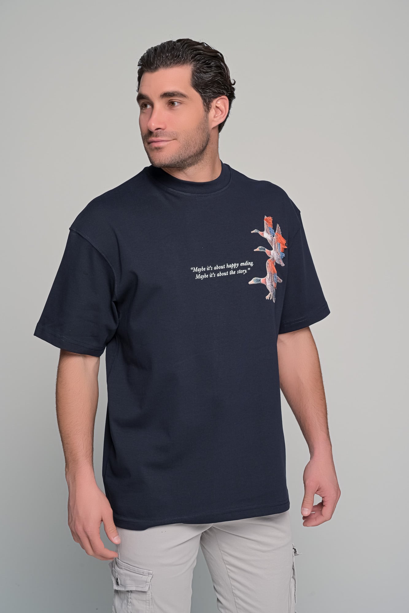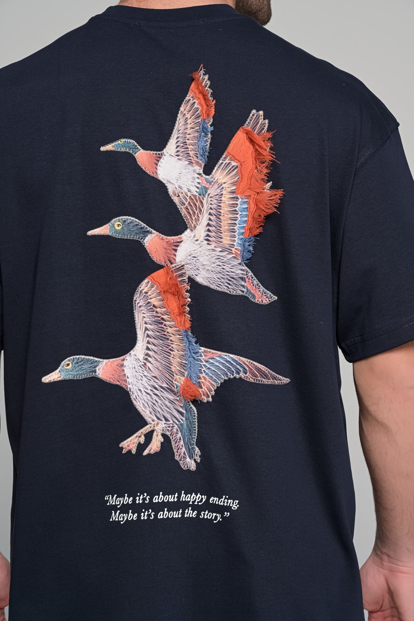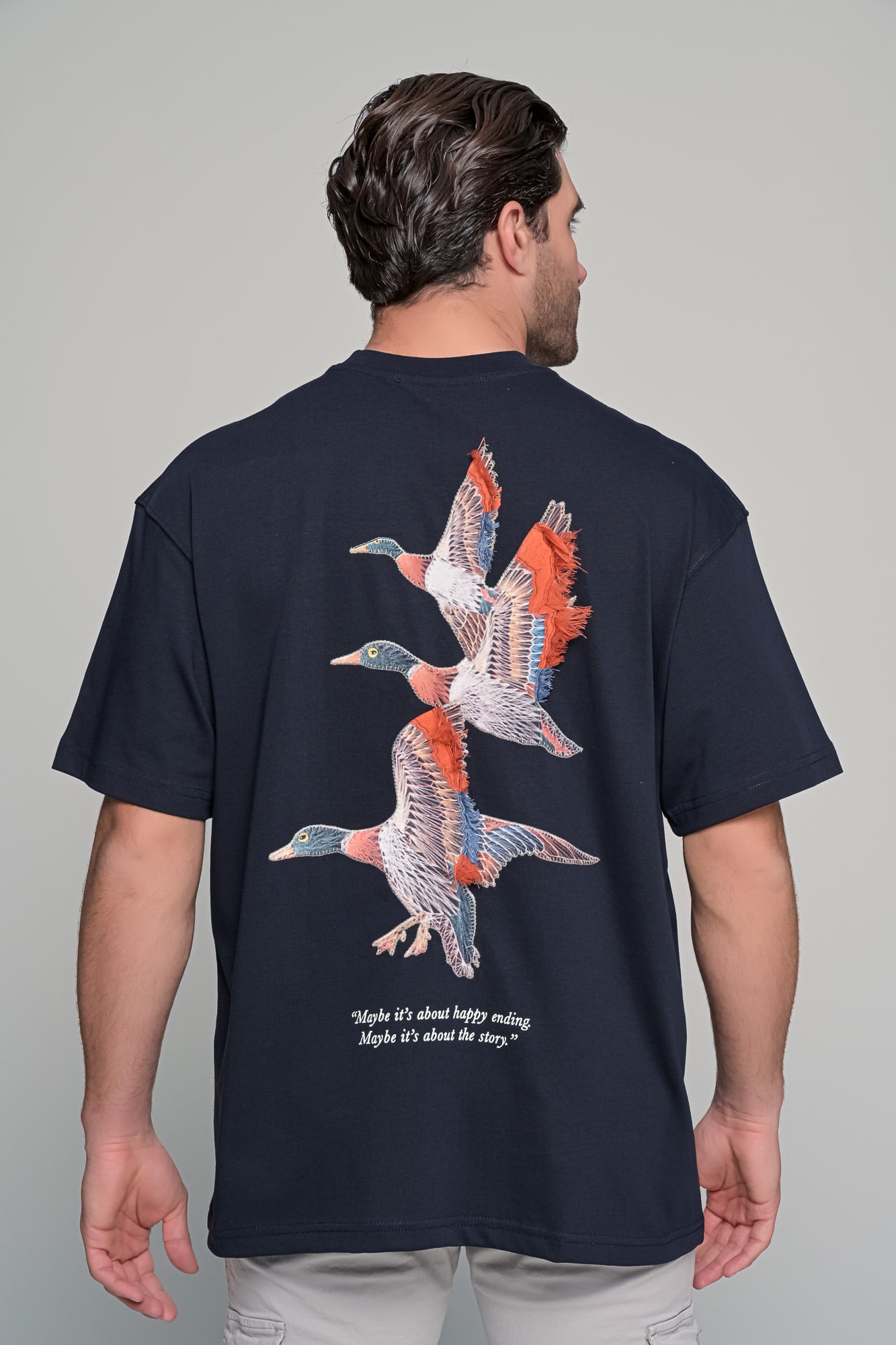 t-shirt freedomΠεριγραφήΑνδρικό oversized t-shirt με δυναμικό graphic εμπνευσμένο από την ελευθερία και την κίνηση. Το σχέδιο με τις πάπιες σε πτήση συμβολίζει το ταξίδι και την ανεξαρτησία| ενώ συνοδεύεται από quote που ενισχύει τον storytelling χαρακτήρα του κομματιού. Διαθέτει print στο στήθος και εντυπωσιακό μεγάλο σχέδιο στην πλάτη| ιδανικό για statement streetwear εμφανίσεις.Χαρακτηριστικάoversized γραμμή (φαρδιά εφαρμογή)Στρογγυλή λαιμόκοψηprint μπροστά & μεγάλο graphic στην πλάτηstatement design με quote λεπτομέρεια Σύνθεση: 100%cotton