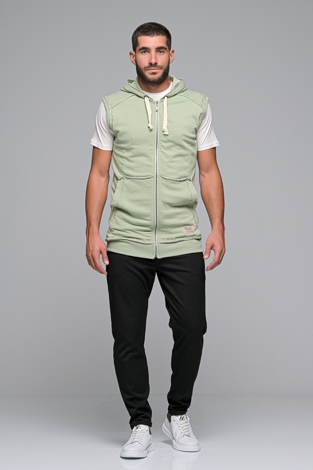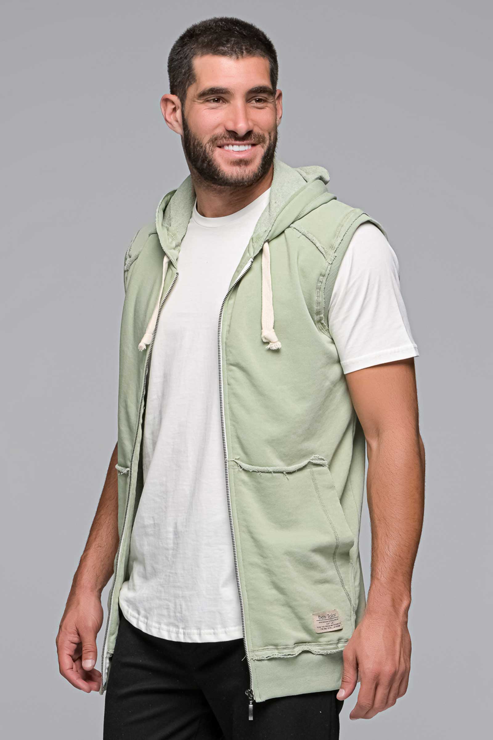 Ανδρική αμάνικη ζακέτα alpha ben tailor. Διαθέτει κουκούλα| πλαϊνές τσέπες και στην μια έχει ένα διακριτικό branded patch οπού έχει πάνω του το logo bentailor. Η γραμμή του είναι normal fit. Συνδυάζεται τέλεια με την φόρμα alpha από την συλλογή μας| «Φορέστε το lifestyle σας» και ξεχωρίστε από το πρωί ως το βράδυ.65%cotton 35%pol