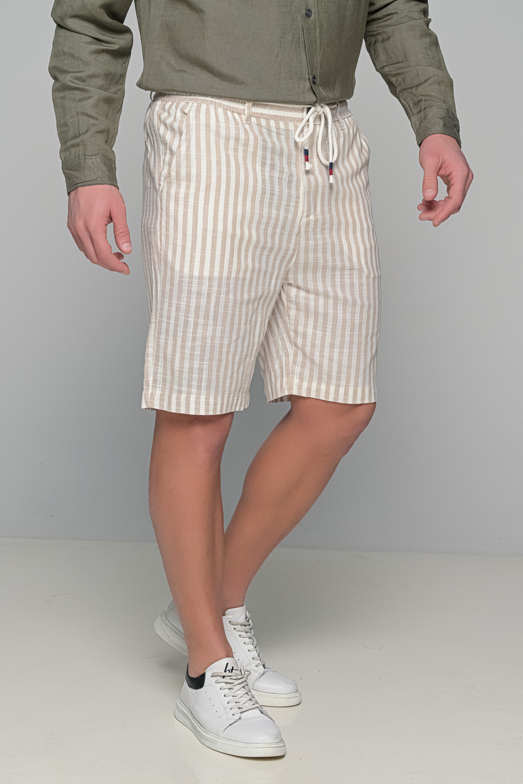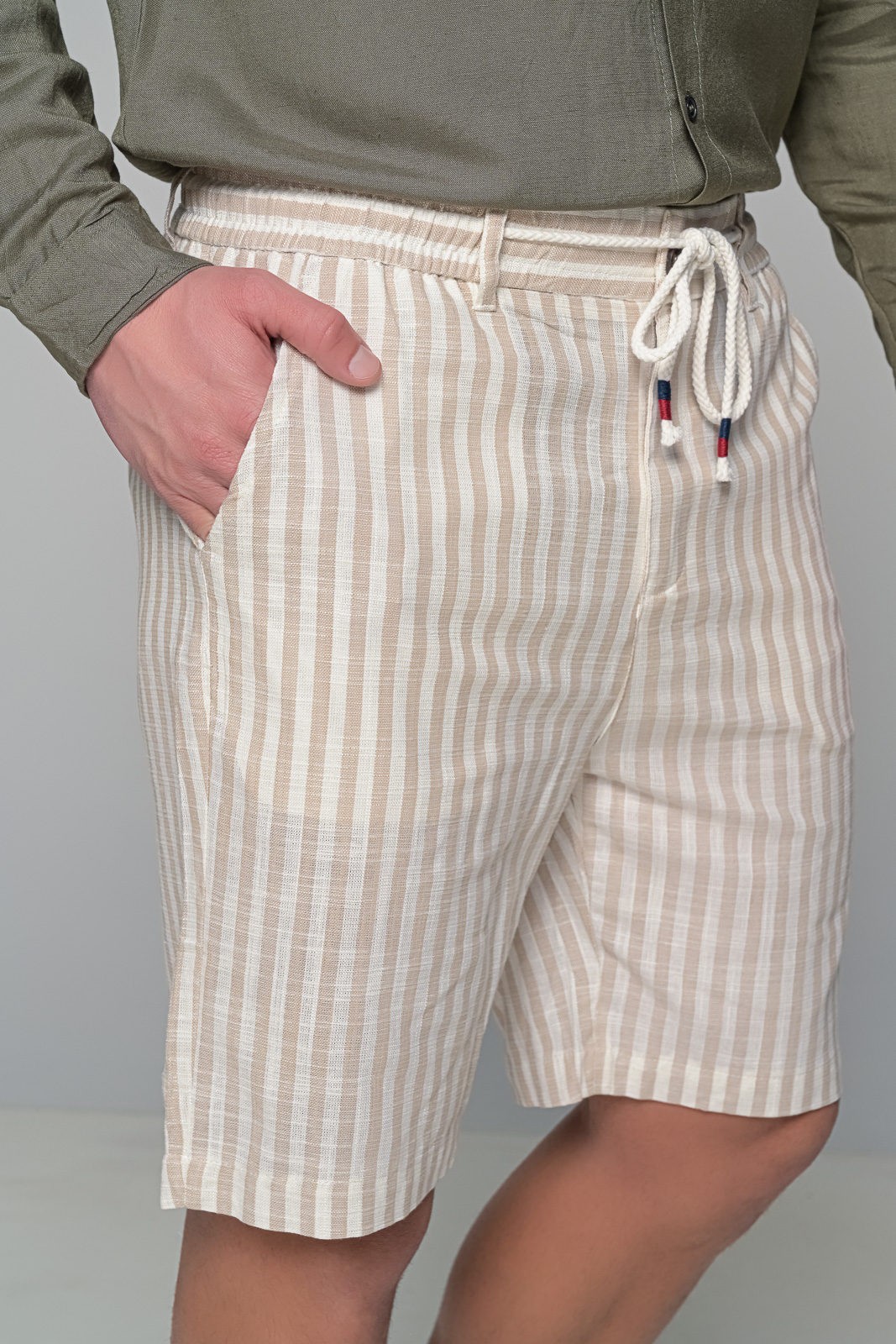 Ανδρική Βερμούδα andalusia – ben tailor Περιγραφή: Η ανδρική βερμούδα andalusia της ben tailor είναι η ιδανική επιλογή για κομψές και δροσερές καλοκαιρινές εμφανίσεις. Ο ανάλαφρος σχεδιασμός της σε συνδυασμό με το διακριτικό ριγέ μοτίβο προσδίδει ένα μοντέρνο και κομψό στυλ. Κατάλληλη για casual αλλά και resort looks| εξασφαλίζει άνεση και ευκολία στις καθημερινές σας εμφανίσεις. Χαρακτηριστικά: Ελαστική μέση με κορδόνι για ρυθμιζόμενη εφαρμογή Ανετη και ελαφριά αίσθηση για τις ζεστές ημέρες Δύο πρακτικές πλαϊνές τσέπες Διακριτικό ριγέ μοτίβο για μοντέρνα εμφάνιση Σύνθεση: 45% cot 55% linen