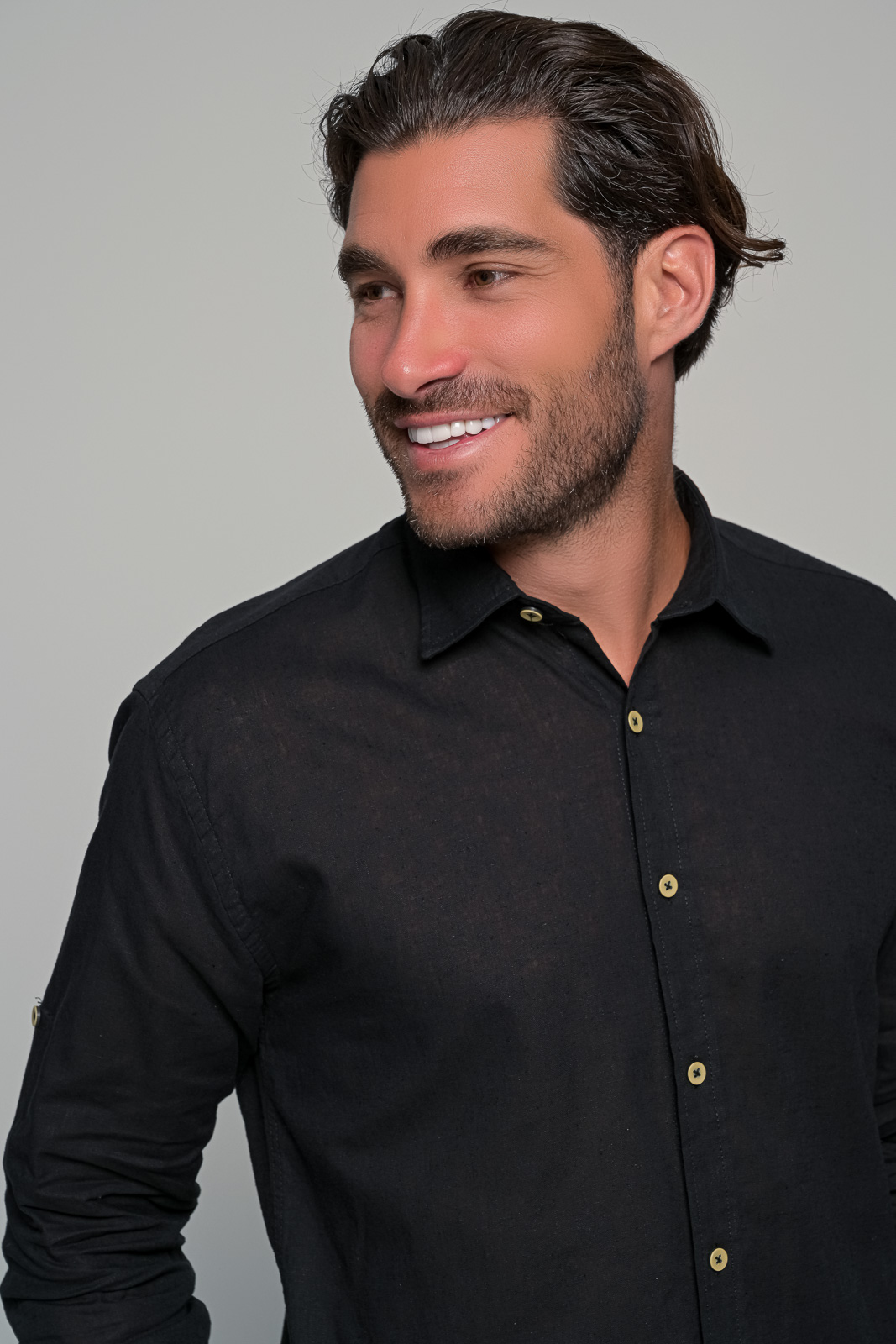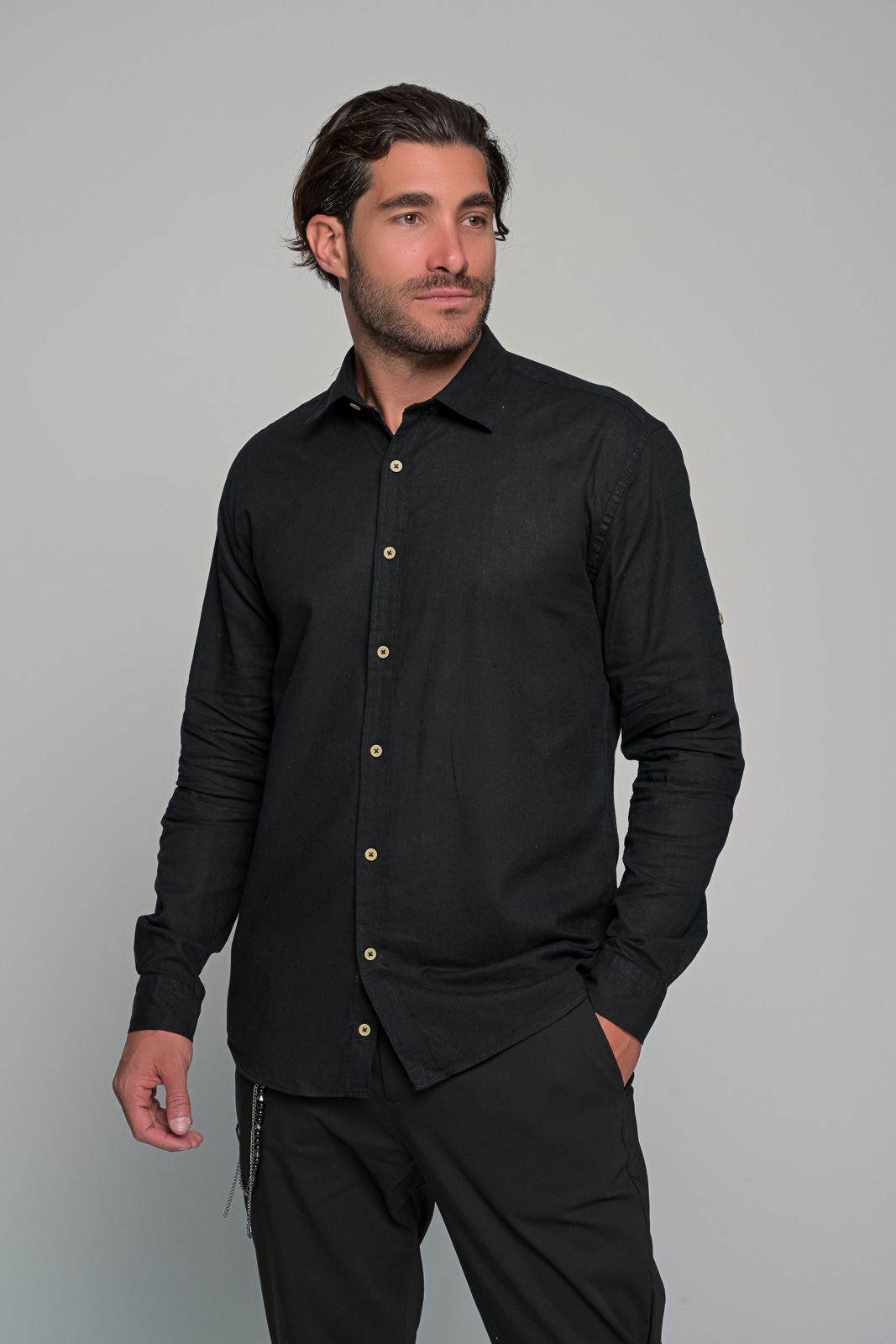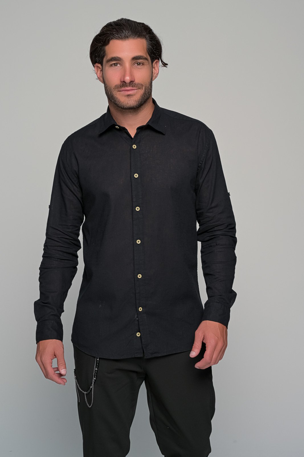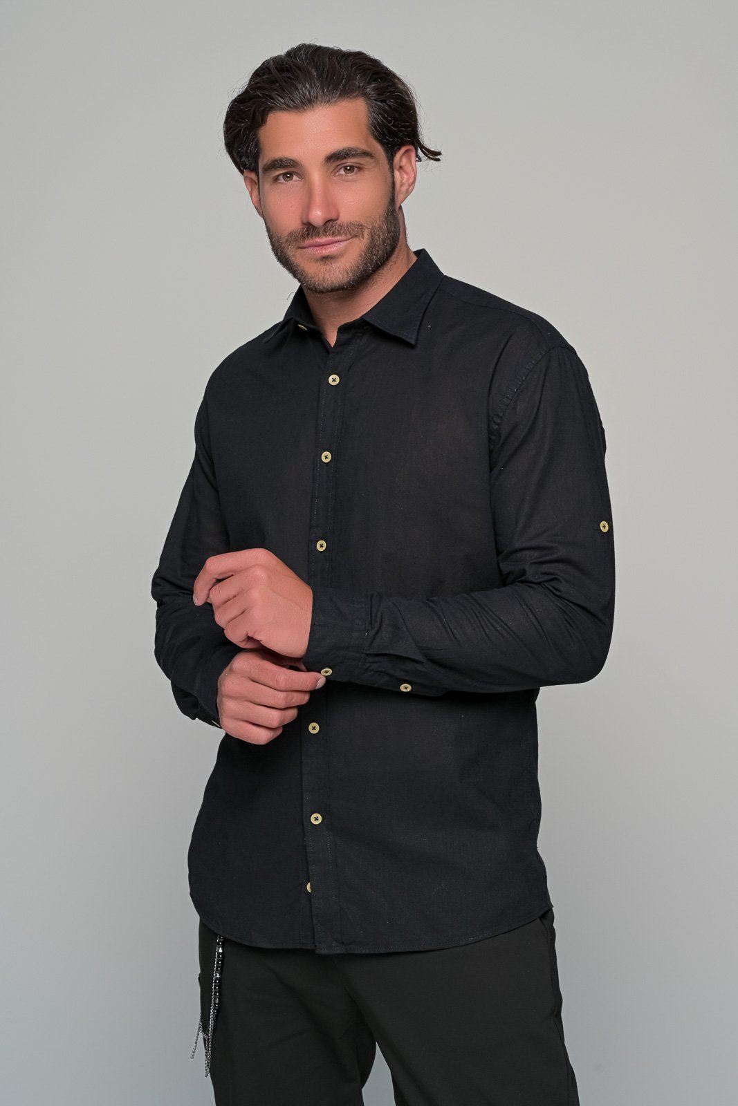ΛΙΝΟ ΠΟΥΚΑΜΙΣΟ MODENA BEN TAILOR – ΜΑΥΡΟ – Ανδρικά
