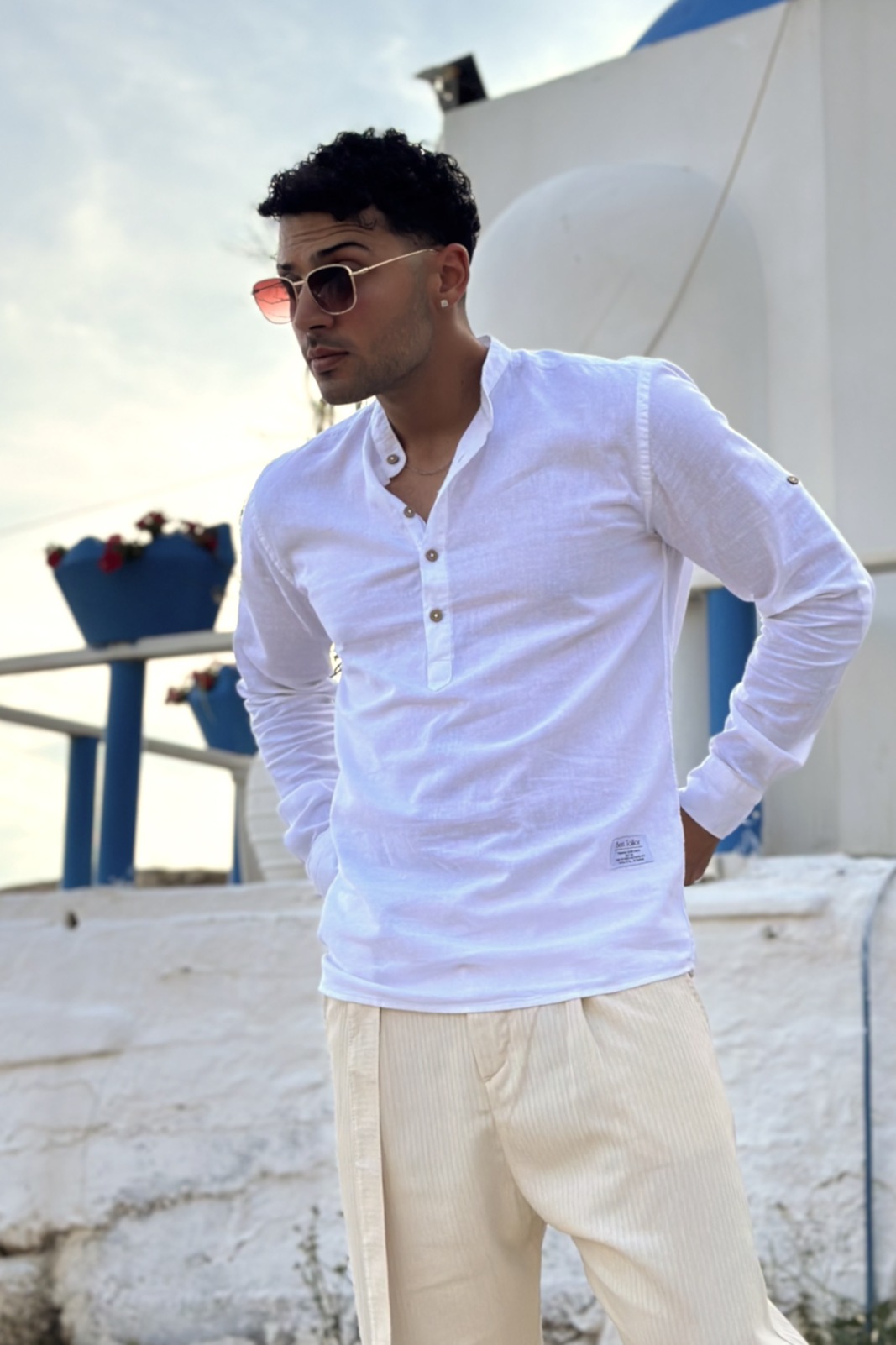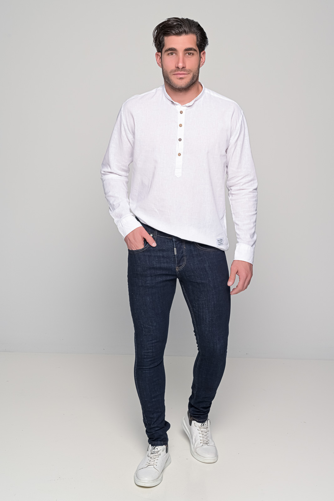 Ανδρική πουκάμισα λινή komo ben tailor. Διαθέτει γιακά μαο με μακρύ μανίκι που καταλήγει σε μανσέτα με κουμπί. Επίσης έχει κλείσιμο μπροστά με 4 κουμπιά| επίσης διαθέτει στο τελείωμα της αριστερής πλευράς διακριτικό branded patch. Η γραμμή του είναι slim fit. Συνδυάζεται ιδανικά με λινή βερμούδα από την συλλογή μας για ένα άνετο καλοκαιρινό look..60%cotton 40%linen