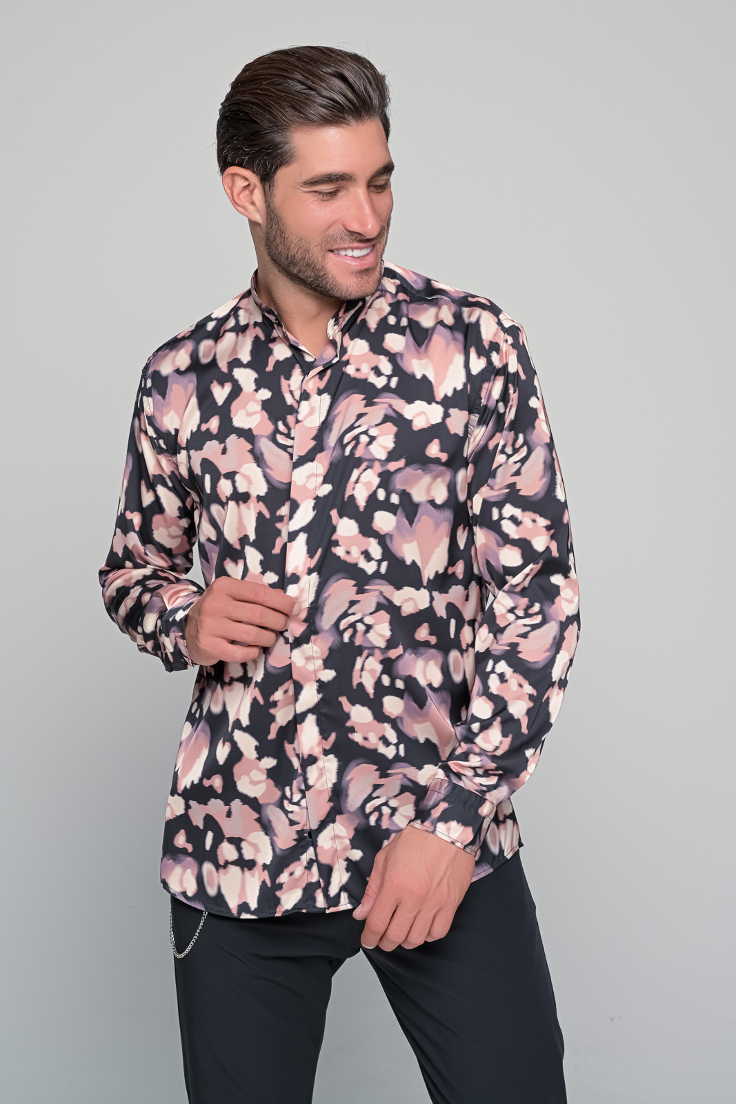 dusk mosaic ανδρικό πουκάμισο από την εταιρεία ben tailor – Συλλογή velluto nero Χαρακτηριστικά: Υλικό: Σατέν υφασμα που προσφέρει μια γυαλιστερή και απαλή επιφάνεια. Τύπωμα: Ψηφιακό τύπωμα που καλύπτει ολόκληρο το πουκάμισο| προσφέροντας ένα μοναδικό και εντυπωσιακό σχέδιο. Πατιλέτα: Κρυφή| για μια απλούστερη και πιο κομψή εμφάνιση. Γιακάς: Μαο γιακάς| γνωστός για την μοντέρνα και διακριτική του φόρμα. Περιγραφή: Το ανδρικό πουκάμισο dusk mosaic από την ben tailor συνδυάζει την πολυτέλεια του σατέν υφάσματος με την καλλιτεχνική αίσθηση ενός ψηφιακού τυπώματος που καλύπτει ολόκληρη την επιφάνειά του. Η κρυφή πατιλέτα προσθέτει μια κομψότητα στο σχεδιασμό| ενώ ο μαο γιακάς τονίζει την σύγχρονη κατεύθυνση της συλλογής velluto nero. Το dusk mosaic είναι ιδανικό για τον άνδρα που θέλει να προσφέρει μια δήλωση μόδας με την εμφάνισή του| αλλά χωρίς να υπερβαίνει τα όρια της κομψότητας.97% micro saten 3% lycra