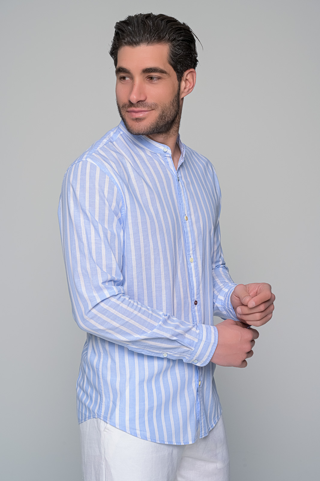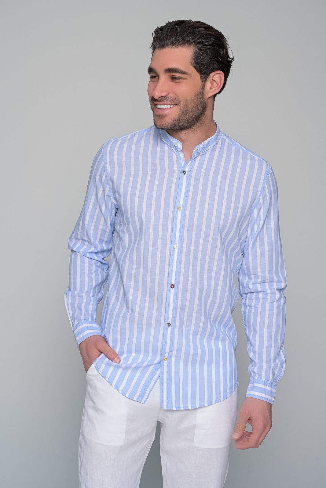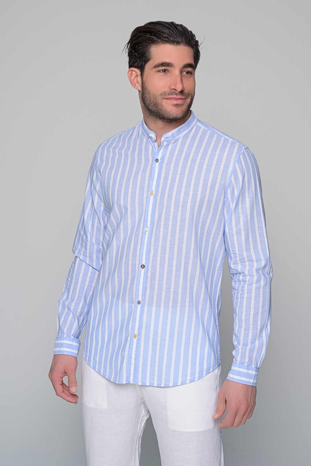 discover linen essence ben tailorΥψηλής ποιότητας λινό ύφασμα:Κάθε στυλάτο και άνετο πουκάμισο linen essence είναι φτιαγμένο από ποιοτικό λινό ύφασμα| προσφέροντας δροσερή και ελαφριά αίσθηση κατά τους ζεστούς μήνες του καλοκαιριού.Μαο γιακάς για εκλεπτυσμένο στυλ: Το μοναδικό μαο γιακά προσδίδει μια εκλεπτυσμένη πινελιά στο σύνολο| συνδυάζοντας την κομψότητα με την άνεση.Ρίγες σχεδιασμένες για διακριτικότητα: Το ριγέ σχέδιο του πουκαμίσου προσφέρει μια διακριτική και κομψή εμφάνιση| ενώ προσδίδει ενδιαφέρον στο γενικό στυλ.Διαφορετικό χρώμα σε κάθε κουμπί: Κάθε λεπτομέρεια λαμβάνεται υπόψη| με κάθε κουμπί να έχει διαφορετικό χρώμα| προσφέροντας μια μοναδική νότα στο σύνολο.Ποικιλία χρωμάτων: Διατίθεται σε τρία χρώματα – μπλε| σιέλ και μπεζ – για να επιλέξετε ανάλογα με το προσωπικό σας στυλ και προτιμήσεις. Σύνθεση: