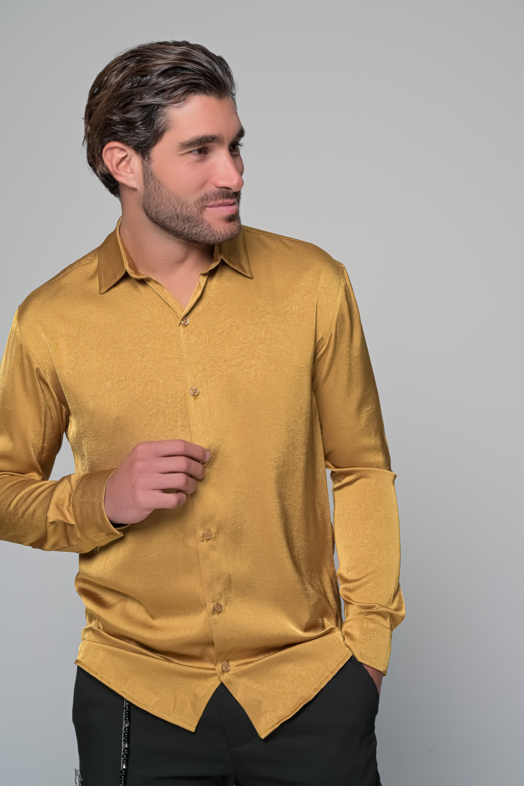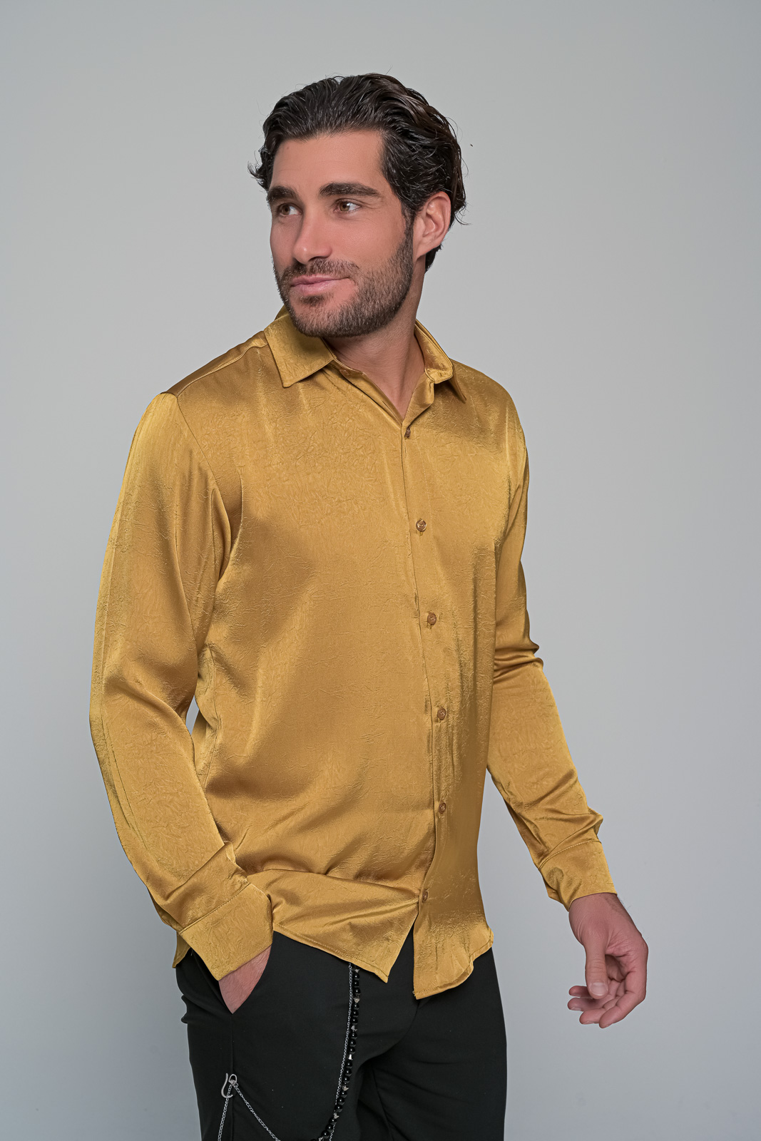 Ανδρικό Πουκάμισο σε Σατινέ Υφή ben tailorΠεριγραφή:Αυτό το κομψό και μοντέρνο ανδρικό πουκάμισο σε λαδί απόχρωση| φτιαγμένο από σατινέ ύφασμα| προσδίδει μια πολυτελή λάμψη που το καθιστά ιδανικό για βραδινές εμφανίσεις ή ειδικές περιστάσεις. Η απλή γραμμή του συνδυάζει άνεση και στυλ| ενώ το ιδιαίτερο ύφασμα του χαρίζει μοναδική αίσθηση και εμφάνιση. Το πουκάμισο αυτό είναι ιδανικό για τον άνδρα που θέλει να ξεχωρίζει με την κομψότητά του.Χαρακτηριστικά:Υφή Σατέν: Λεία και λαμπερή επιφάνεια που προσδίδει πολυτέλεια. Λαδί Απόχρωση: Διακριτική και μοντέρνα| ιδανική για κάθε περίσταση.aνετη Γραμμή:** Εξασφαλίζει άνεση και κομψότητα σε κάθε κίνηση.Κλασικός Γιακάς: Προσθέτει μια διαχρονική πινελιά| συνδυάζοντας μοντέρνο στυλ με κλασική κομψότητα. Σύνθεση: 100%polyester