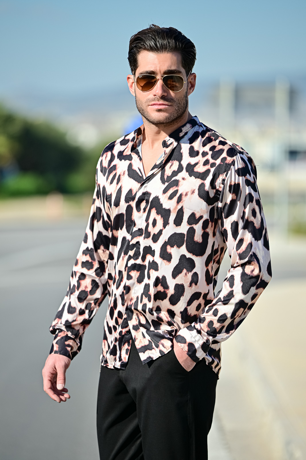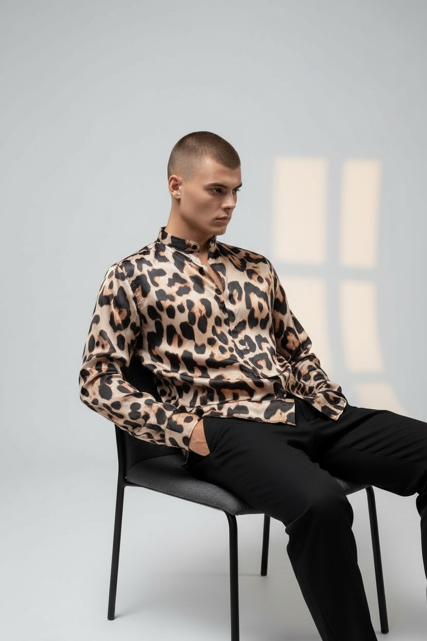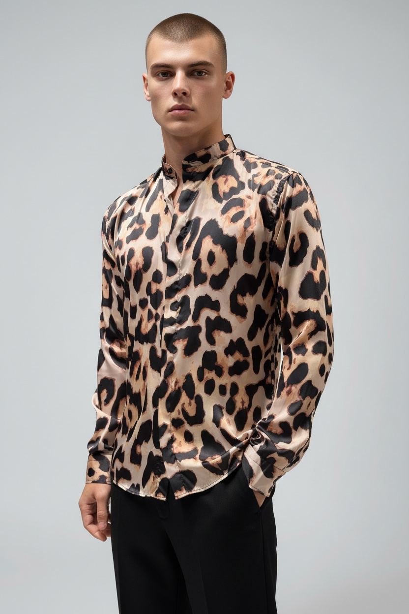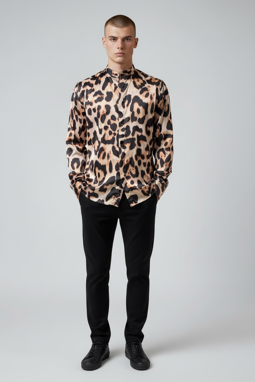 savannah style από ben tailor Καταδυθείτε στον εξωτικό κόσμο της Σαβάνας με το κομψό πουκάμισο savannah style από την εταιρεία ben tailor. Χαρακτηριστικά: Υλικό: Λαμπερό σατέν ύφασμα που προσφέρει αίσθηση πολυτέλειας. Σχεδιασμός: Μοναδικό λεοπάρ σχέδιο που αντανακλά τον άγριο χαρακτήρα της φύσης. Πατιλέτα: Κρυφή| για μια καθαρή και κομψή εμφάνιση. Γιακάς: Μοντέρνος μαο γιακάς. Συνδυασμός: Ιδανικό με τζιν ή σμαρτ παντελόνι για μια εντυπωσιακή εμφάνιση. Αποκτήστε το για να προσθέσετε ένα ξεχωριστό κομμάτι στη γκαρνταρόμπα σας!97% micro saten 3% lycra