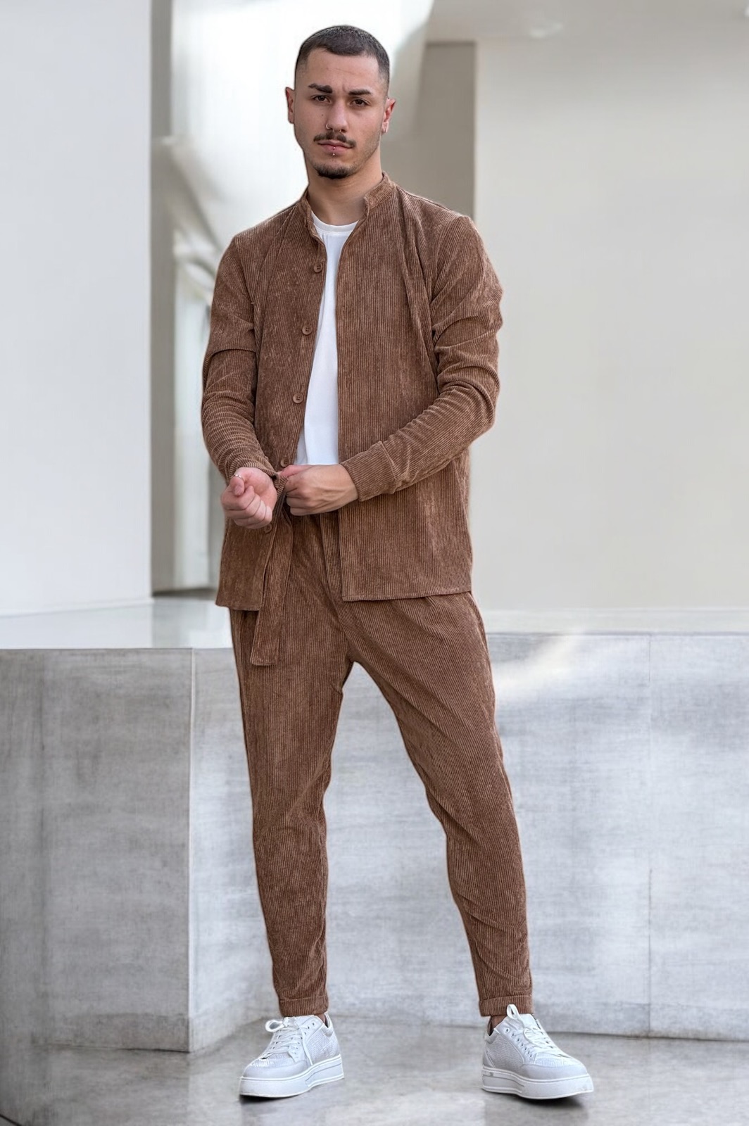 Σετ Παντελόνι – Πουκάμισο corduroy ben tailorΠεριγραφή: Αυτό το σετ από το ben tailor περιλαμβάνει παντελόνι και πουκάμισο από ύφασμα κοτλέ| προσφέροντας ένα στυλάτο και μοντέρνο casual look. Το υλικό από κοτλέ προσφέρει άνεση και ανθεκτικότητα| καθιστώντας το σετ ιδανικό για καθημερινές εμφανίσεις ή πιο χαλαρές εξόδους. Το πουκάμισο έχει κλασικό κούμπωμα μπροστά και μακριά μανίκια| ενώ το παντελόνι διαθέτει χαλαρή εφαρμογή και ελαστική μέση για επιπλέον άνεση. Το σετ είναι ιδανικό για εκείνους που επιθυμούν να συνδυάσουν άνεση με στυλ.Χαρακτηριστικά:Υλικό: Υψηλής ποιότητας ύφασμα κοτλέ για άνεση και αντοχή.Σχέδιο: Σετ που περιλαμβάνει πουκάμισο με κουμπιά και παντελόνι με ελαστική μέση.Εφαρμογή: Χαλαρή και άνετη γραμμή| ιδανική για casual εμφανίσεις.Στυλ: Μοντέρνο casual look για καθημερινή χρήση ή εξόδους. Σύνθεση: 82% pol 15% naylon 3% spadex