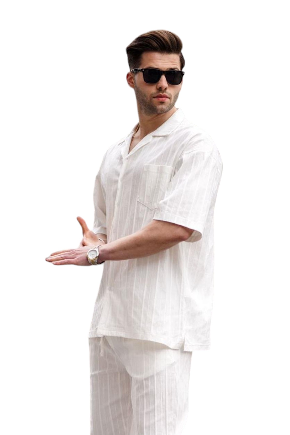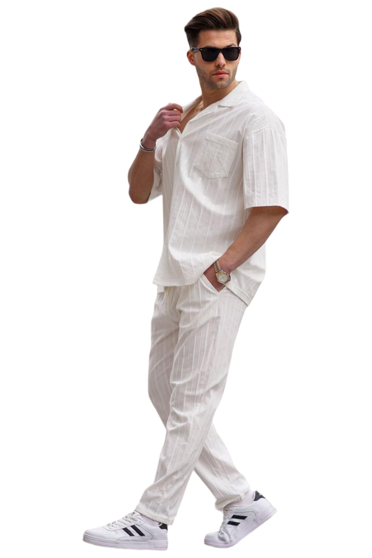 Ανδρικό Καλοκαιρινό Σετ jonathanΧαρακτηριστικά:Συνδυασμός ενός κομψού πουκάμισου με γιακά και μια ευκολοφόρετη παντελόνα| σχεδιασμένο για τις ζεστές μέρες του καλοκαιριού. Το σετ διαθέτει φρέσκα και καλοκαιρινά χρώματα που ανανεώνουν το στυλ σας. Το πουκάμισο διαθέτει γιακά για έναν εκλεπτυσμένο και κομψό αέρα. Η παντελόνα διαθέτει πλεξίδα ύφασματος που δημιουργεί μια διακριτική κάθετη ρίγα ως σχέδιο| προσφέροντας μια μοναδική αισθητική πινελιά. Κατασκευασμένο από υψηλής ποιότητας υλικά για άνεση και αντοχή. Κατάλληλο για κάθε περίσταση| από τις επαγγελματικές σας υποχρεώσεις μέχρι τις χαλαρές εξορμήσεις με φίλους και οικογένεια.Αναβαθμίστε το στυλ σας και απολαύστε την άνεση με το καλοκαιρινό σετ ‘jonathan’ από την ben tailor| ένα σύνολο που αναδεικνύει την κομψότητα και τη φρεσκάδα σας. Σύνθεση: 100%cotton
