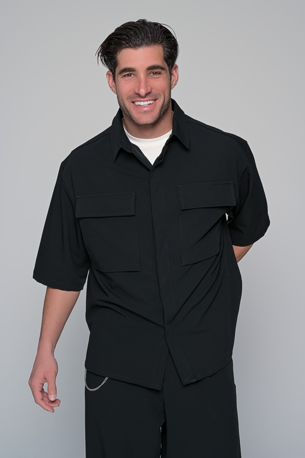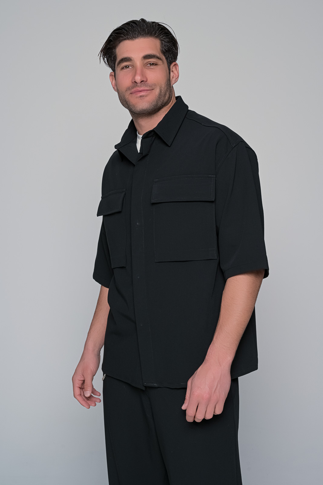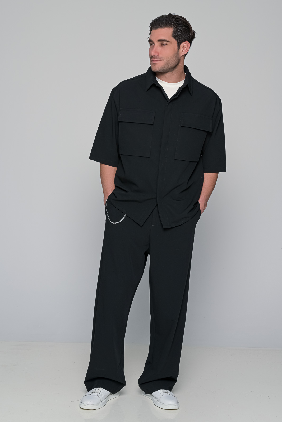 Ανδρικό Σετ pallazo style ben tailor  Ενα σετ ανδρικού ρούχου που αποτελείται από ένα oversized πουκάμισο και ένα παντελόνι τύπου pallazo. Το πουκάμισο χαρακτηρίζεται από την άνετη και φαρδιά του γραμμή| ενώ διαθέτει καπάκια στις τσέπες για ένα μοντέρνο στυλ.Το παντελόνι pallazo έχει επίσης φαρδιά γραμμή| προσφέροντας άνεση και κίνηση σε κάθε εμφάνιση. Το σετ είναι διαθέσιμο σε δύο κλασικά χρώματα| μαύρο και μπεζ| για να ικανοποιήσει κάθε προτίμηση και στυλ. Σύνθεση: 60% pes 35% visc 5% ela