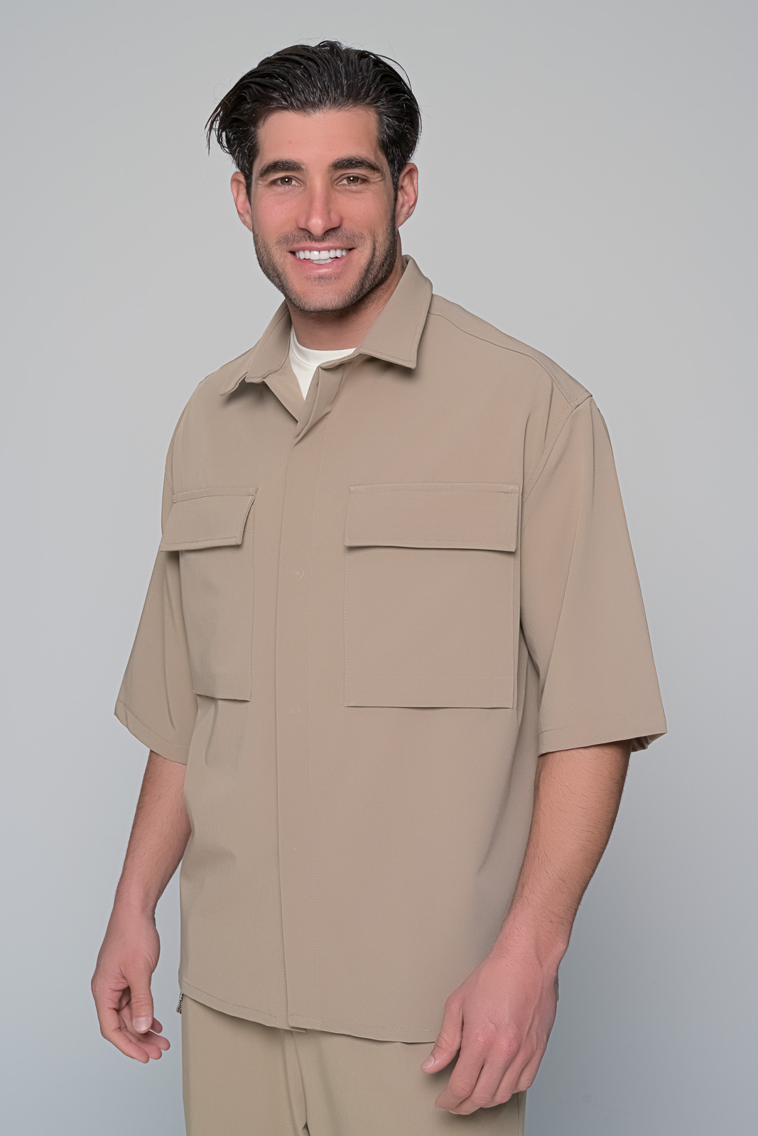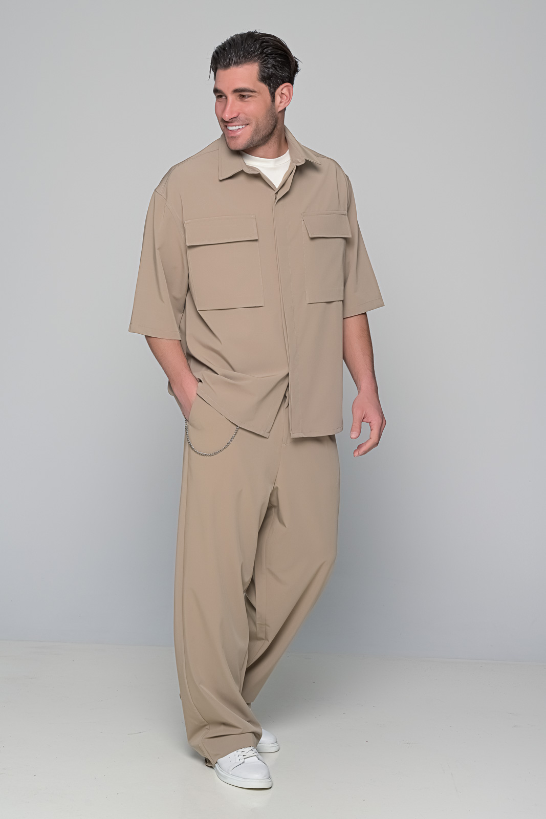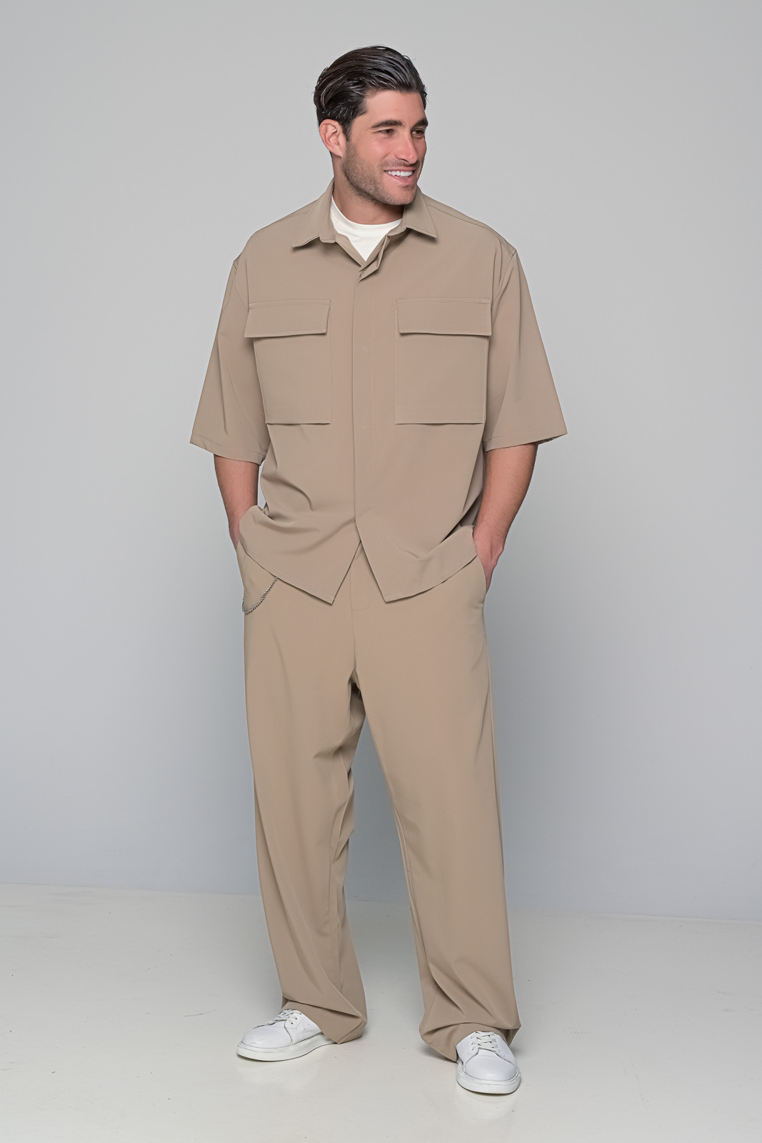 Ανδρικό Σετ pallazo style ben tailor Ενα σετ ανδρικού ρούχου που αποτελείται από ένα oversized πουκάμισο και ένα παντελόνι τύπου pallazo. Το πουκάμισο χαρακτηρίζεται από την άνετη και φαρδιά του γραμμή| ενώ διαθέτει καπάκια στις τσέπες για ένα μοντέρνο στυλ.Το παντελόνι pallazo έχει επίσης φαρδιά γραμμή| προσφέροντας άνεση και κίνηση σε κάθε εμφάνιση. Το σετ είναι διαθέσιμο σε δύο κλασικά χρώματα| μαύρο και μπεζ| για να ικανοποιήσει κάθε προτίμηση και στυλ. Σύνθεση: 60% pes 35% visc 5% ela