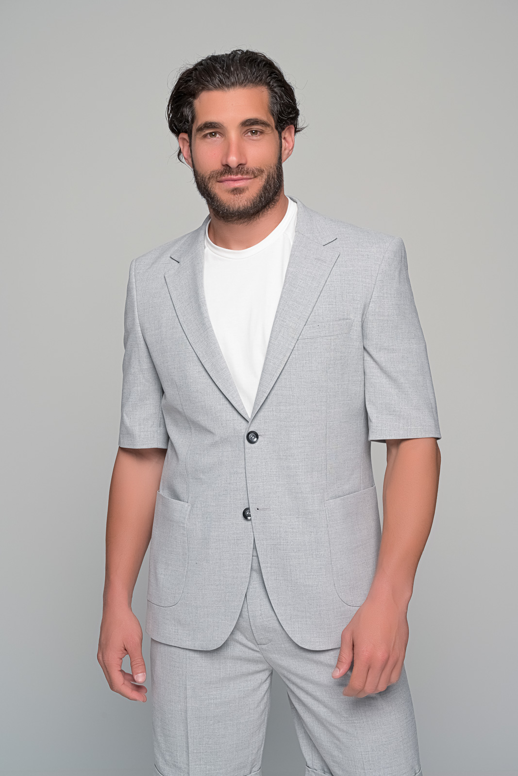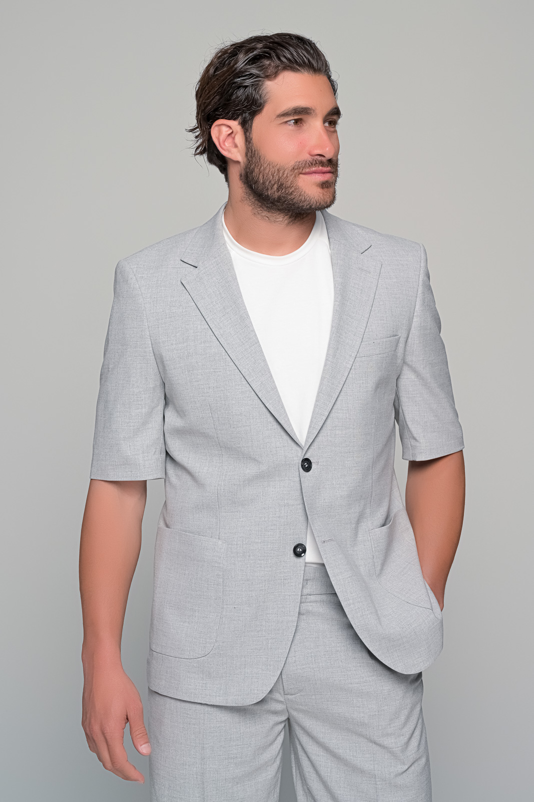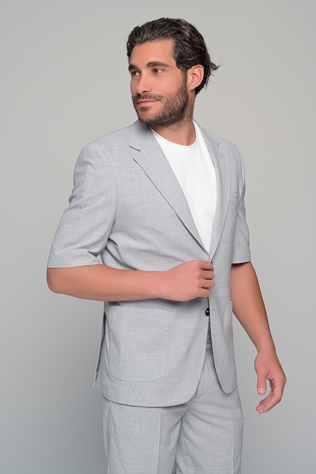ΣΕΤ ΒΕΡΜΟΥΔΑ – ΣΑΚΑΚΙ prestigio ben tailor Περιγραφή: Το σετ prestigio της ben tailor επαναπροσδιορίζει το καλοκαιρινό ανδρικό ντύσιμο με άψογη ισορροπία ανάμεσα στην άνεση και την κομψότητα. Το σακάκι με μανίκι 3/4 συνδυάζεται άψογα με την αντίστοιχη βερμούδα| δημιουργώντας ένα σύνολο ιδανικό για κομψές εμφανίσεις σε events| καλοκαιρινούς γάμους ή city looks με χαρακτήρα. Χαρακτηριστικά: Σακάκι με κοντό μανίκι και δίπλωμα στο πέτο Βερμούδα με πιέτες και ρεβέρ στο τελείωμα Ανάλαφρη εφαρμογή κατάλληλη για υψηλές θερμοκρασίες Ιδανικό για smart casual ή formal summer εμφανίσεις Σύνθεση: 60% viscon 37%pol 3% lycra
