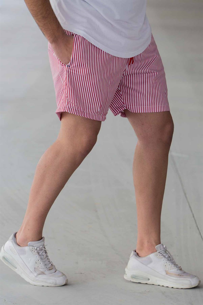 Ανδρικό μαγιό σορτς με κάθετες ρίγες. Διαθέτει λάστιχο στην μέση με κορδόνι για καλύτερη εφαρμογή.100%polyester