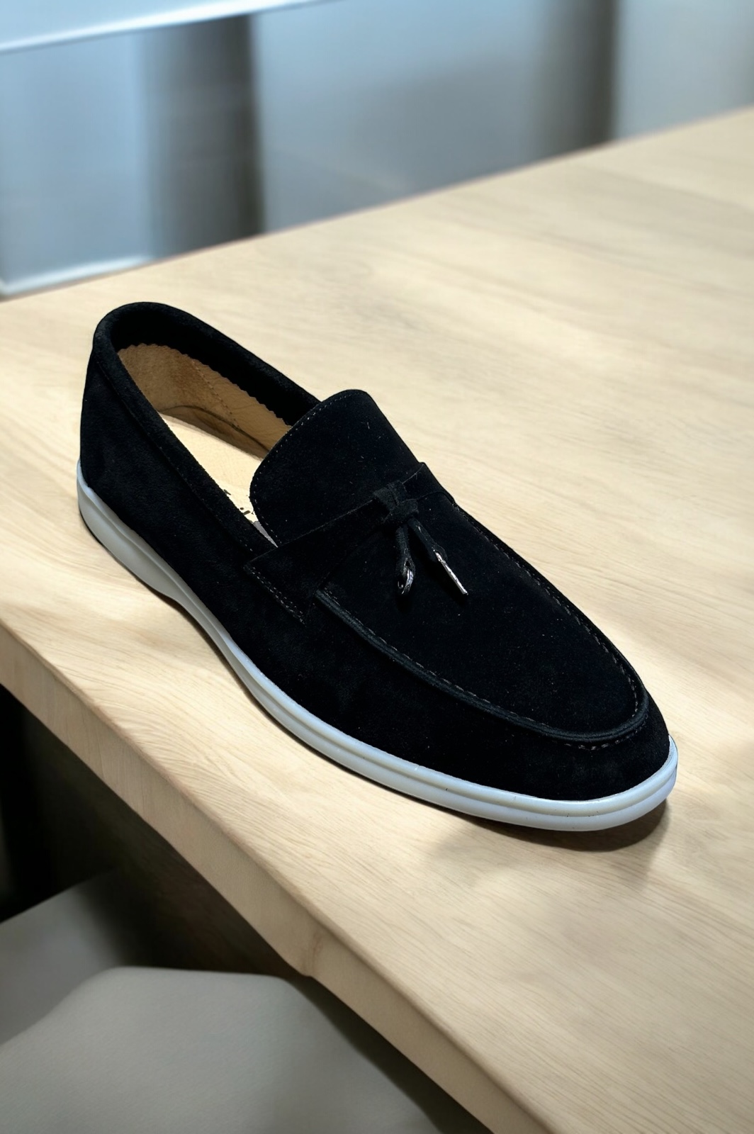 Παπούτσι loafer aura ben tailor ΔερμάτινοΠεριγραφή: Το loafer aura της ben tailor είναι ένα κομψό και διαχρονικό δερμάτινο παπούτσι με μοντέρνες λεπτομέρειες και χαμηλή σόλα. Η απλότητα του σχεδίου σε συνδυασμό με την άνετη εφαρμογή το καθιστούν ιδανική επιλογή για καθημερινή χρήση αλλά και για πιο επίσημες περιστάσεις.Χαρακτηριστικά: Υλικό: Γνήσιο δέρμα σουέτ Σόλα: Ελαφριά και άνετη Χρώμα: Μαύρο Λεπτομέρειες: Διακριτική διακόσμηση με φουντίτσαΙδανικό για: Καθημερινή casual εμφάνιση αλλά και για smart-casual ντύσιμο σε πιο επίσημες περιστάσεις. Σύνθεση: 100%leather