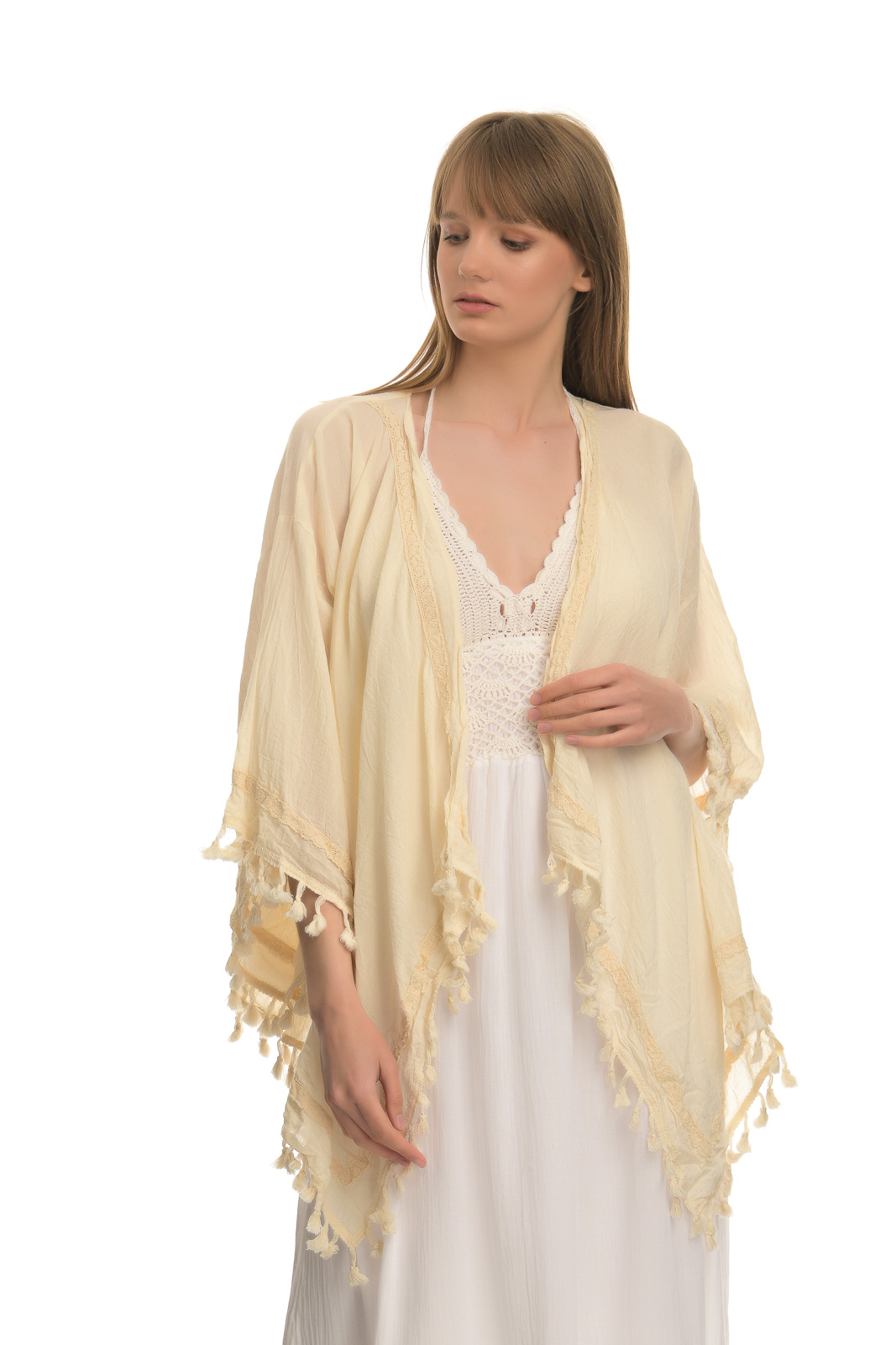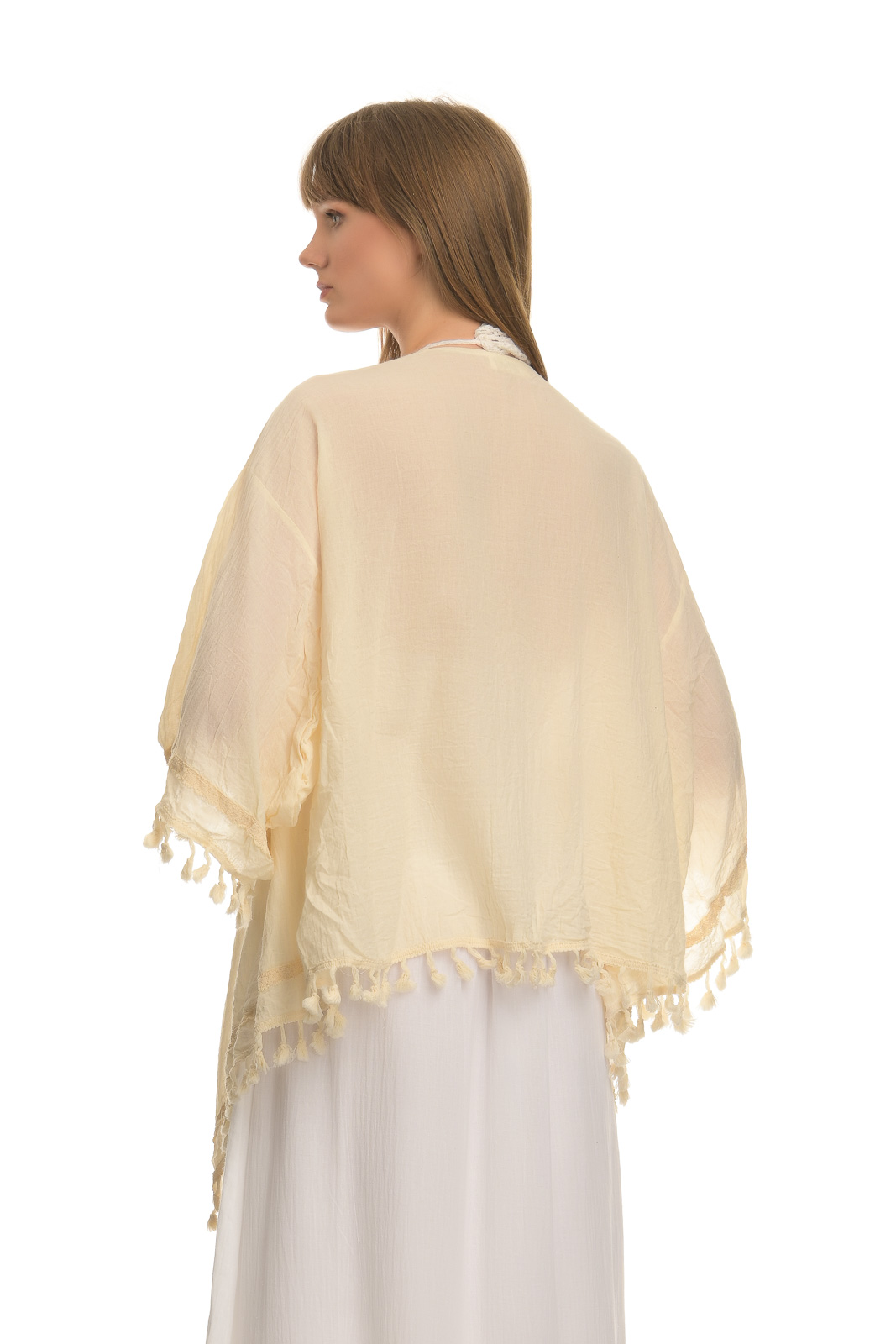 Εσάρπα με φουντάκια ασύμμετρη σε ανοιχτό κίτρινο