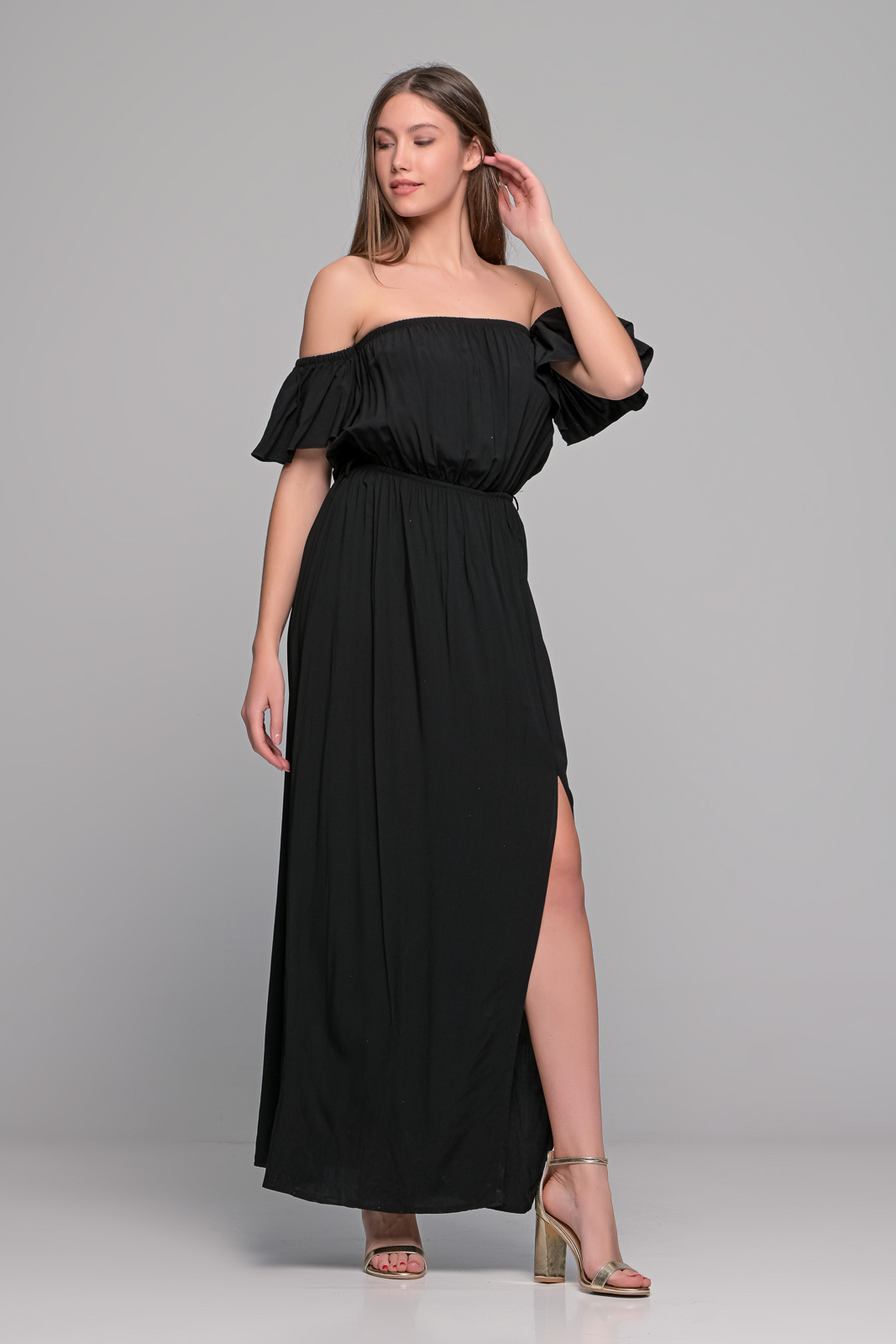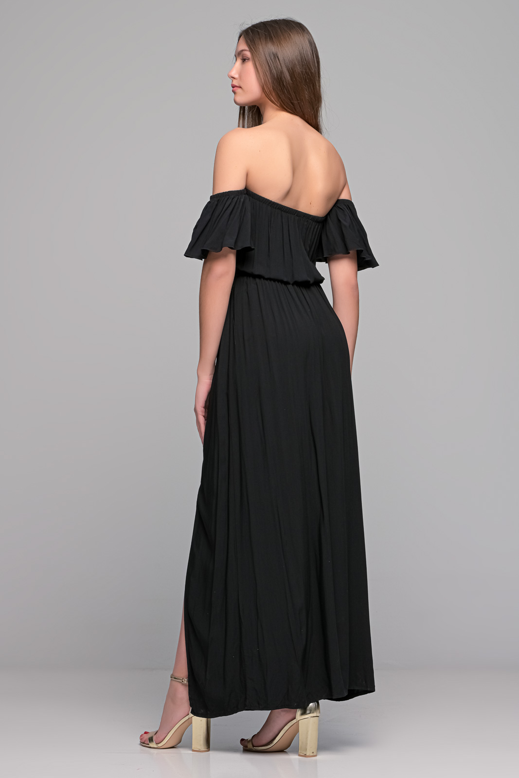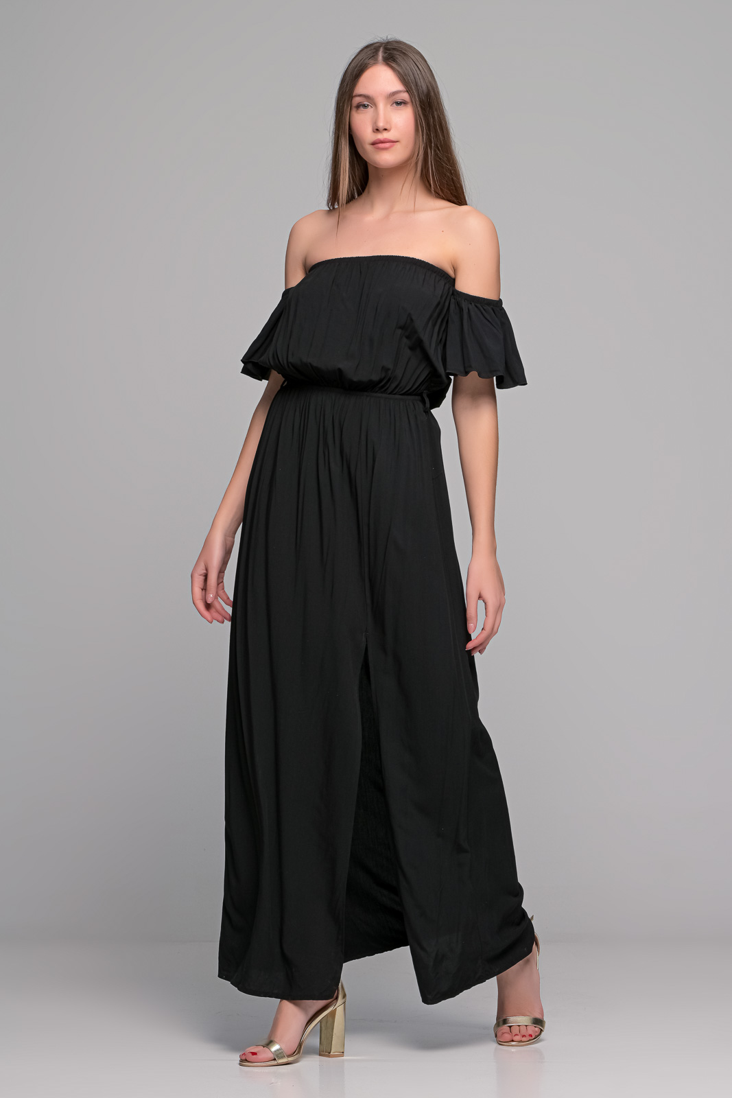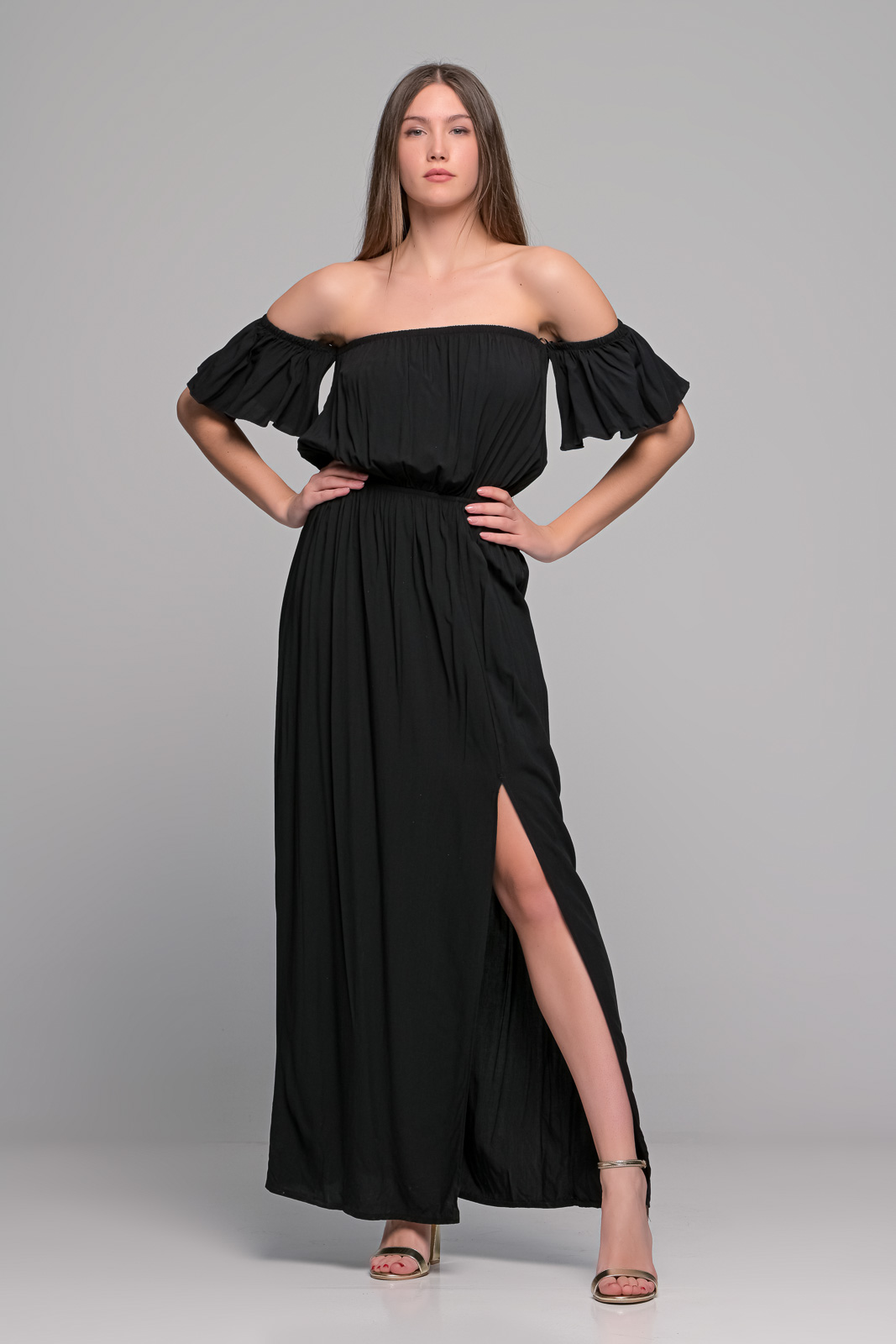 Μάξι Μαύρο Φόρεμα Με Σούρες