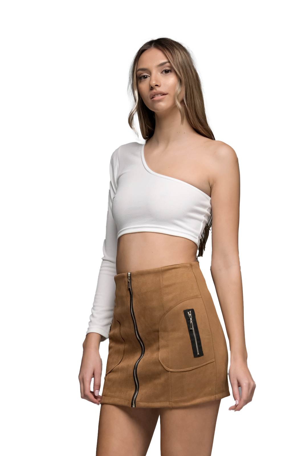 Λευκό κρεπ crop top με λεπτομέρεια ένας ώμος