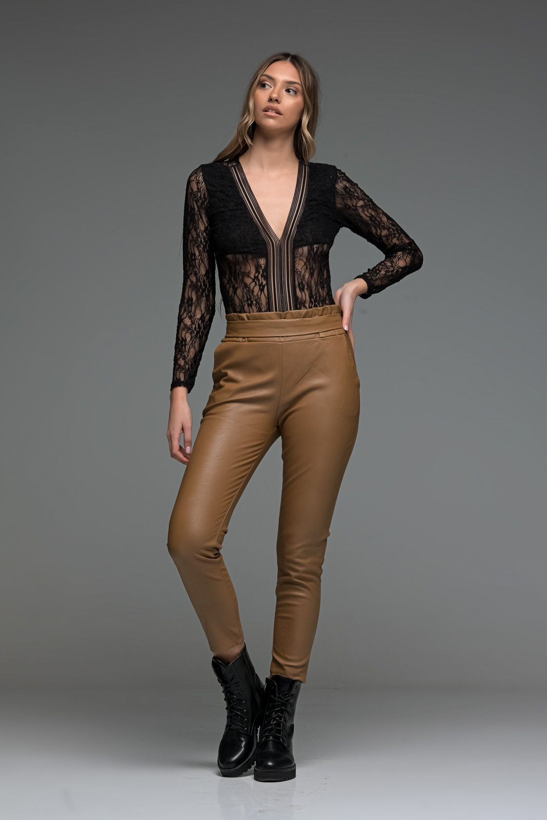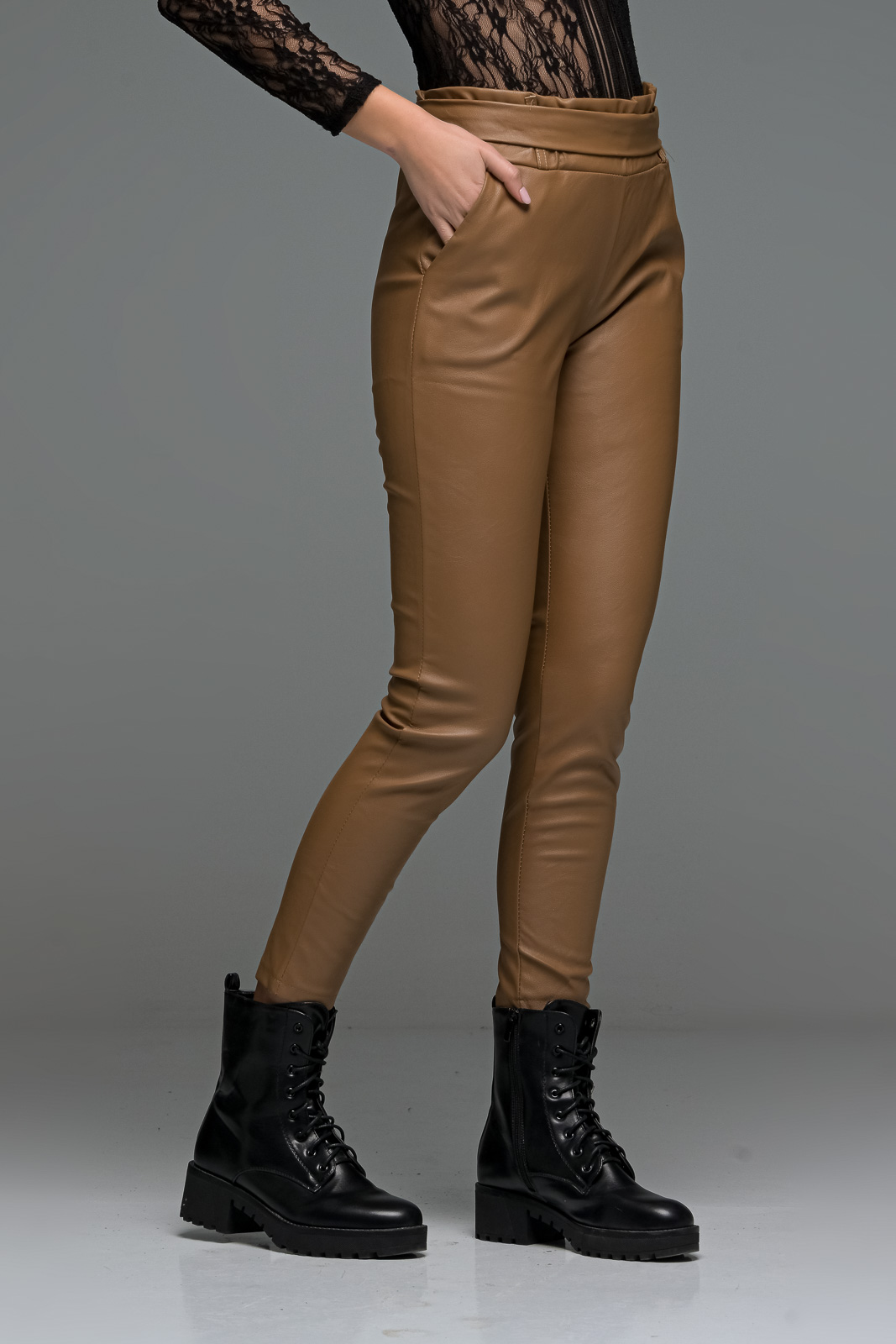 Ταμπά δερματίνη παντελόνι με λάστιχο